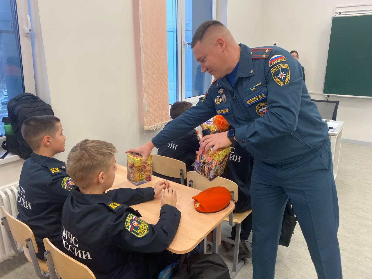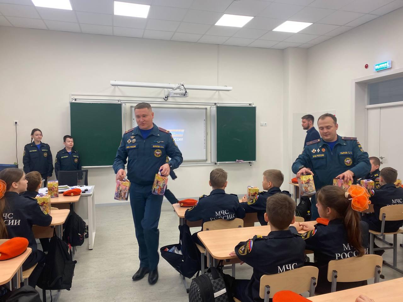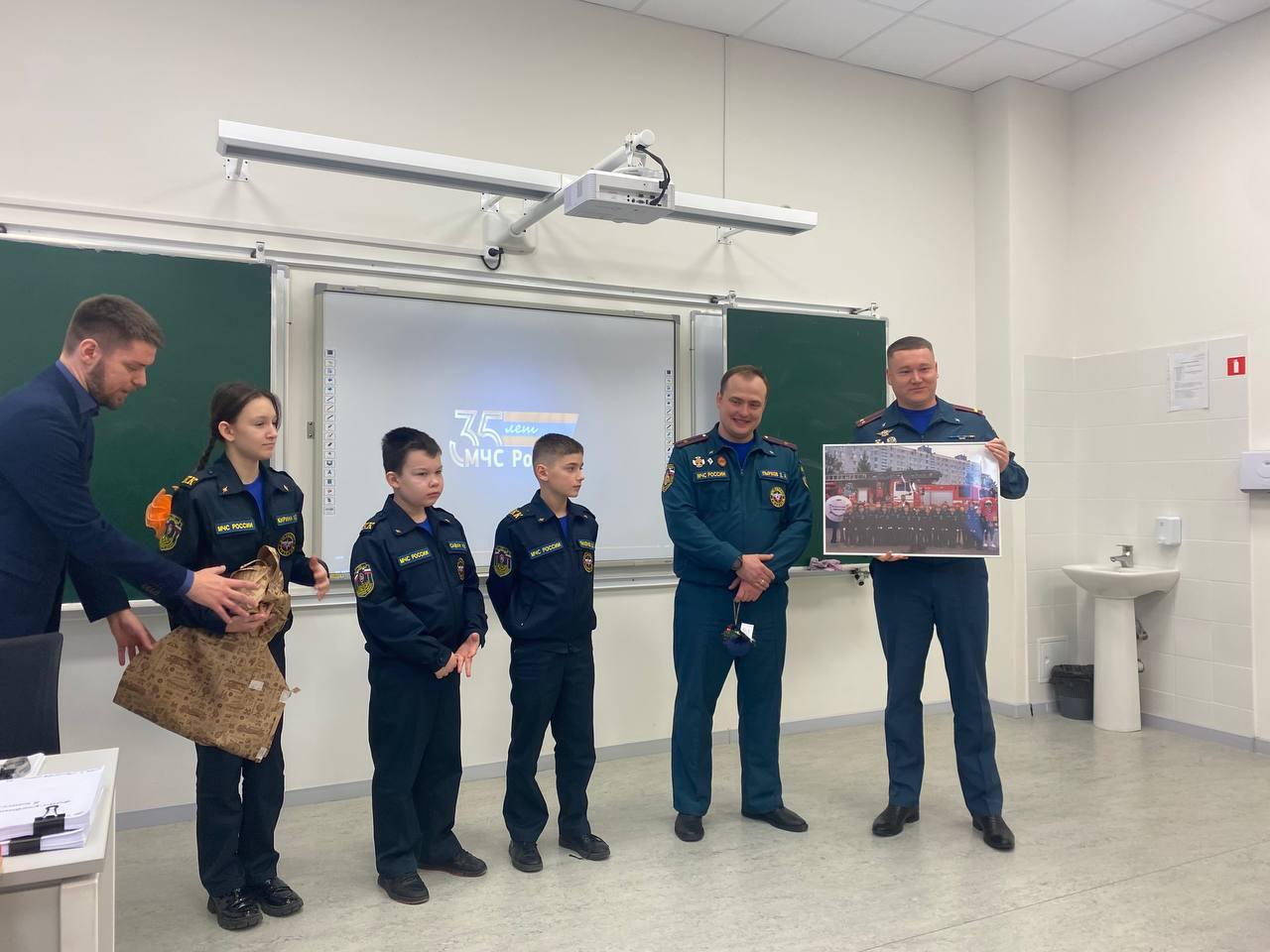 Символично, что в юбилейный год Министерства у нас в гимназии открылся предкадетский класс. Ребята узнали историю ведомства и познакомились с профессиями, связанными с повседневной деятельностью спасателей.