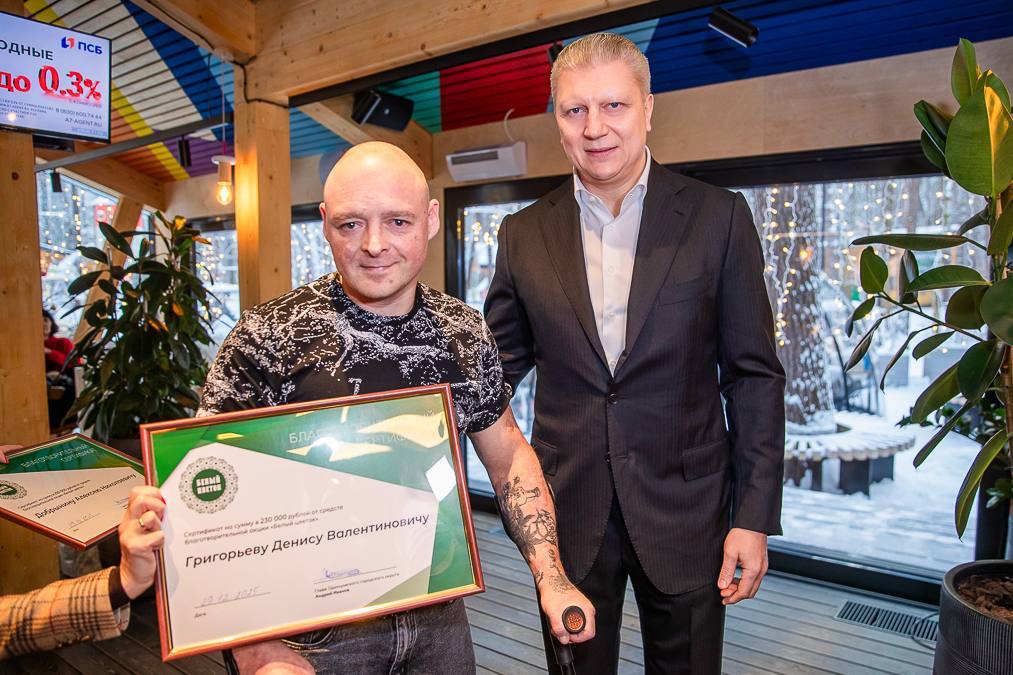 В парке «Раздолье» вручил подарочные сертификаты ветеранам и семьям погибших героев специальной военной операции — средства были собраны в ходе благотворительной акции «Белый цветок».