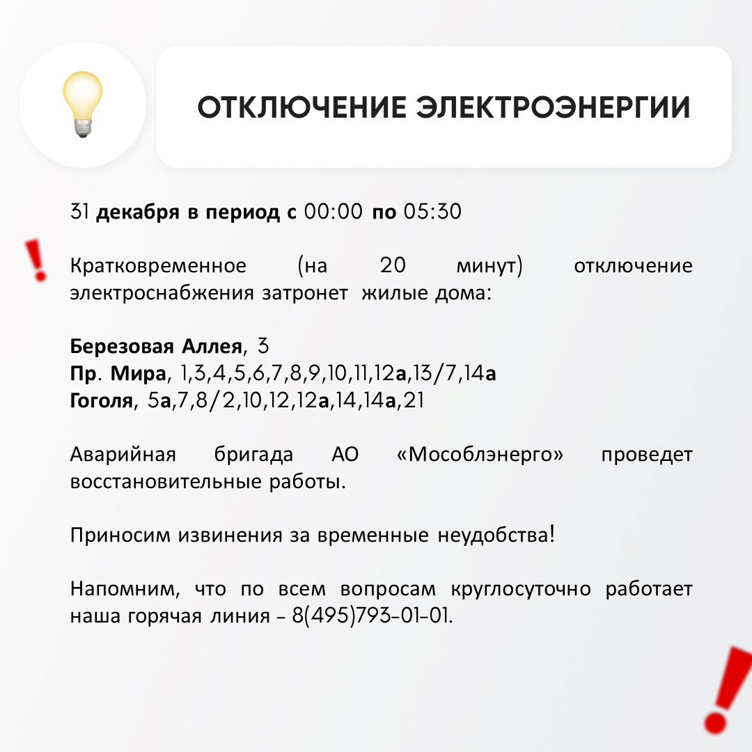 Временное отключение электроснабжения