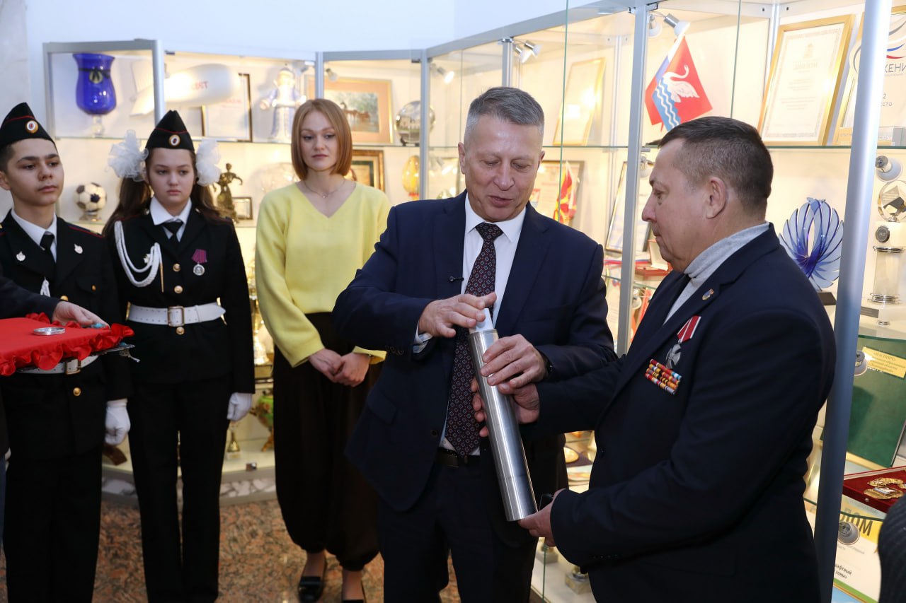 В этот символический сосуд мы поместили Послание из 2025 года – Года защитника Отечества и года 80-летия Великой Победы.