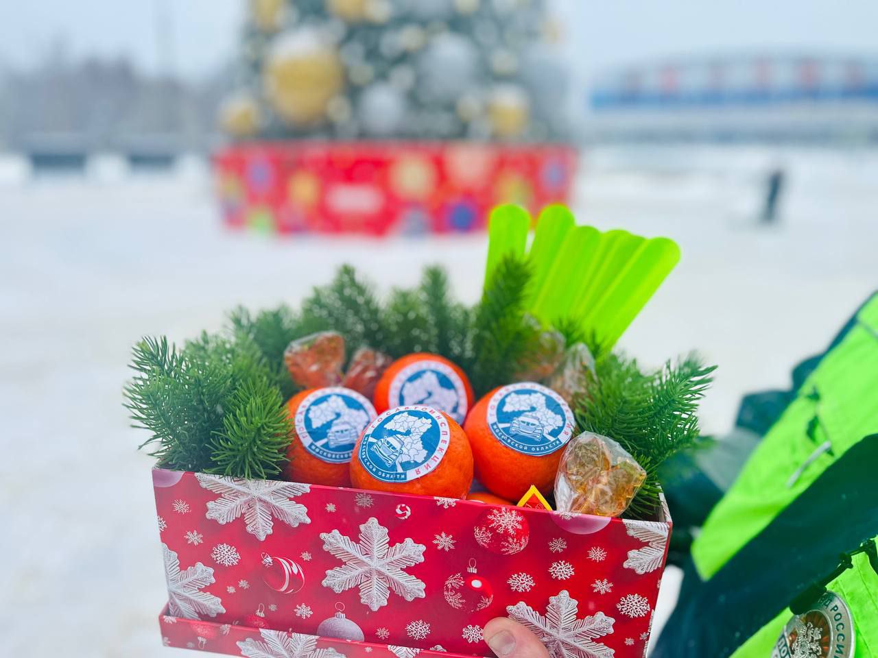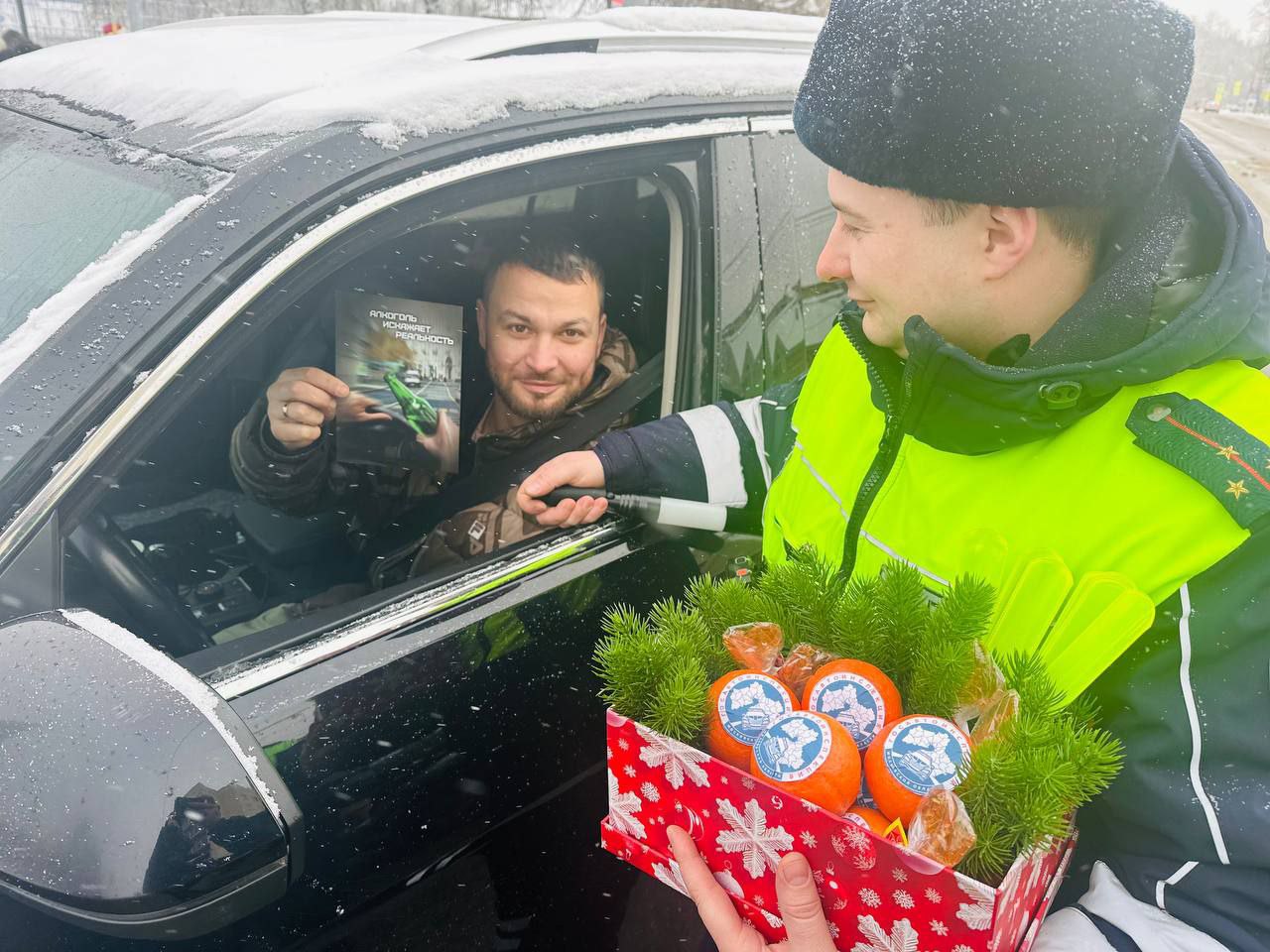 Вместе с полицейскими соблюдение правил дорожного движения проконтролировал и Дед Мороз, который вручал водителям и их пассажирам не только сладкие подарки, но и полезные аксессуары, а также памятки по дорожной безопасности.