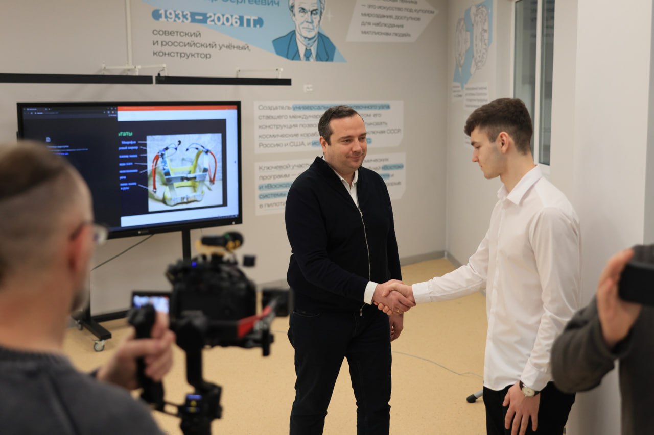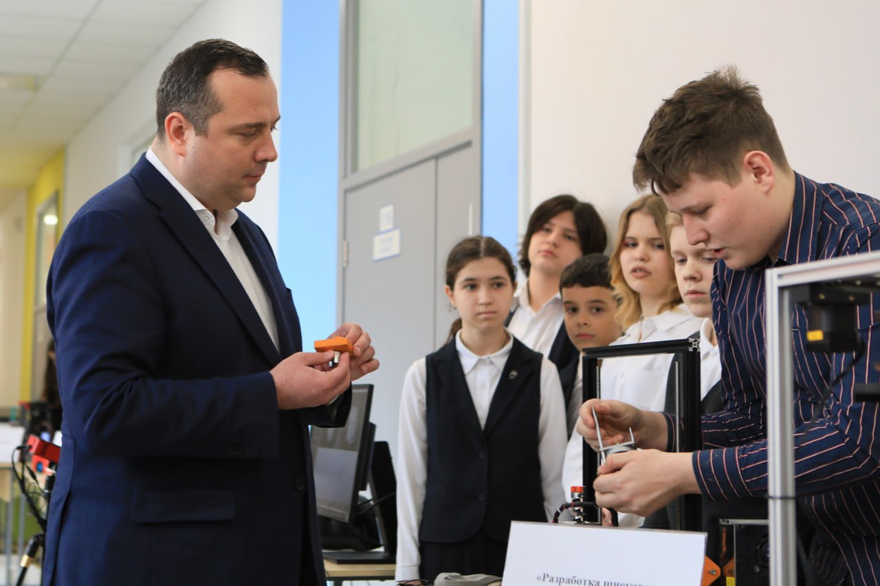 О своем проекте Губернатору Андрею Юрьевичу Воробьеву рассказал ученик одного из наших мини-квантов Роман Екимиани. По просьбе Романа Губернатор подарил школе №1 3D-принтер.