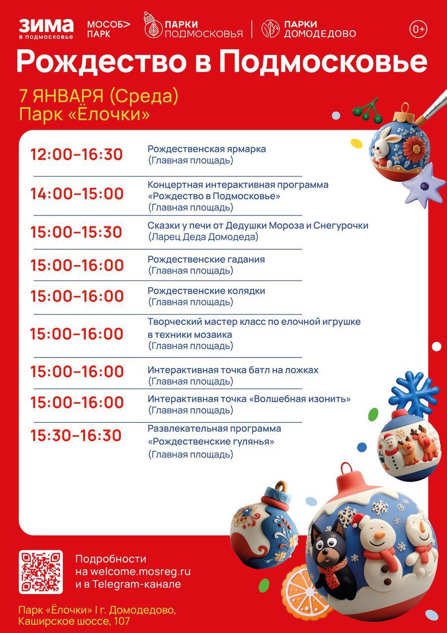 7 января вас ждут рождественские ярмарки, концертные и интерактивные программы, творческие мастер-классы и зимние забавы, гадания и колядки, а также встречи с Дедом Морозом и Снегурочкой.
