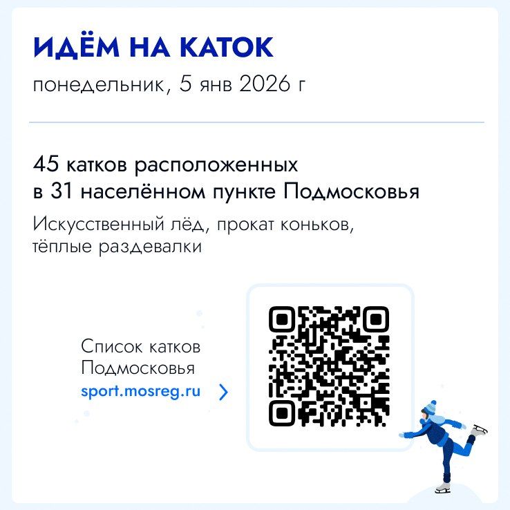 «Я приглашаю всех вас провести время с близкими и друзьями, а также укрепить своё здоровье благодаря физической активности. Наши катки Подмосковья готовы встречать вас – давайте вместе создадим тёплую и дружную атмосферу зимних праздников! На сайте sport.mosreg.ru вы сможете найти каток по душе и выбрать самое удобное время для занятий. Кроме того, не упустите возможность принять участие в уникальном событии – 10 января 2026 года мы встретимся в конькобежном центре «Коломна» на IV Всероссийских соревнованиях по конькобежному спорту. Возможно, именно здесь кто-то из вас решит посвятить себя этому замечательному виду спорта! До встречи на льду!»,