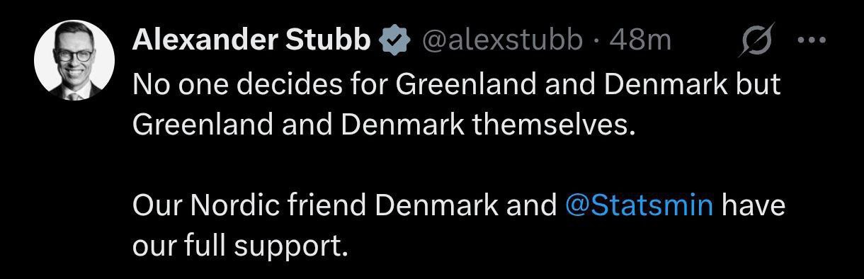 "Никто не принимает решения за Гренландию и Данию, кроме самих Гренландии и Дании. Наш северный друг Дания имеют нашу полную поддержку"
