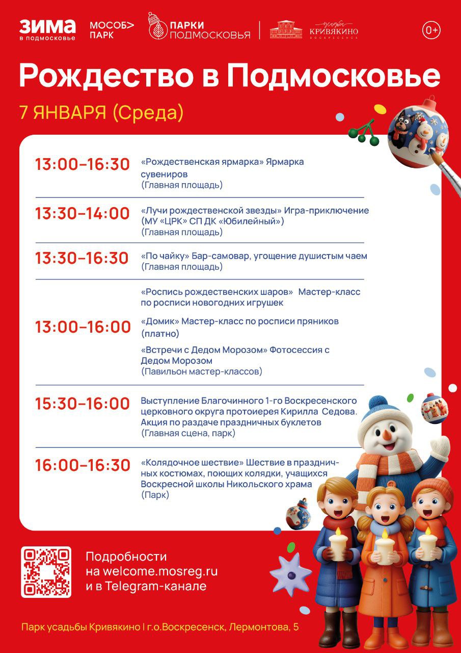 Завтра, 7 января, парки усадьбы Кривякино и «Москворецкий» приглашают жителей и гостей Воскресенска на семейный праздник «Рождество в Подмосковье»