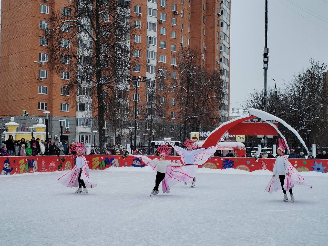 В рамках программы «Рождество в Подмосковье» в парке имени Виктора Талалихина главным событием стало ледовое представление от спортивного балета на льду «Восход».