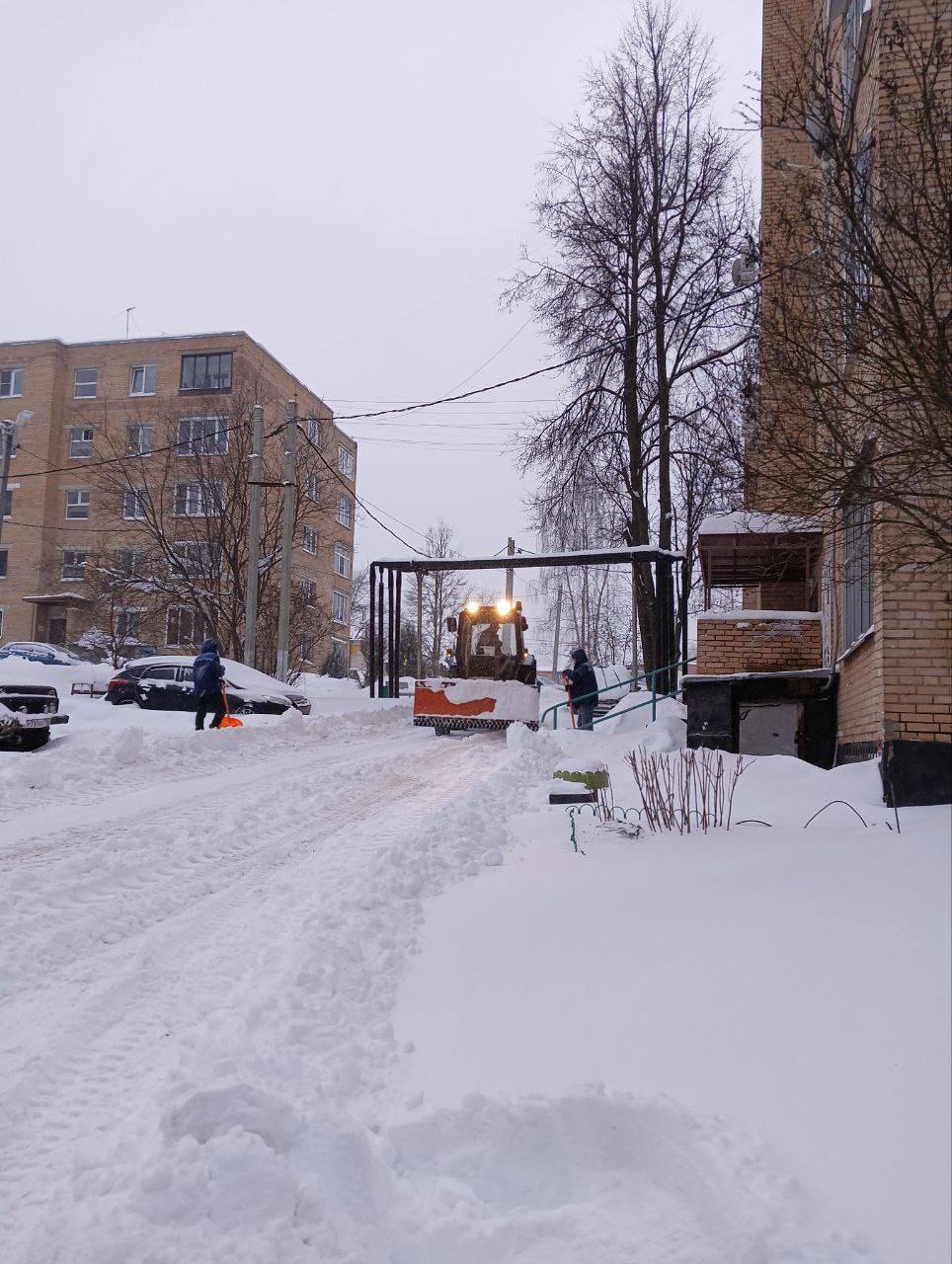 Уборка снега в Домодедово продолжается. Техника и люди работают в усиленном режиме!
