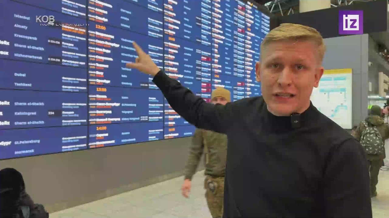 "Практически все рейсы перенесены, это можно заметить по зачёркнутому времени, рядом назначено новое. Десятки рейсов и вовсе отменены, хотя они должны были вылететь еще вчера", — сообщил корреспондент "Известий" Игорь Капориков прямиком из Шереметьево.