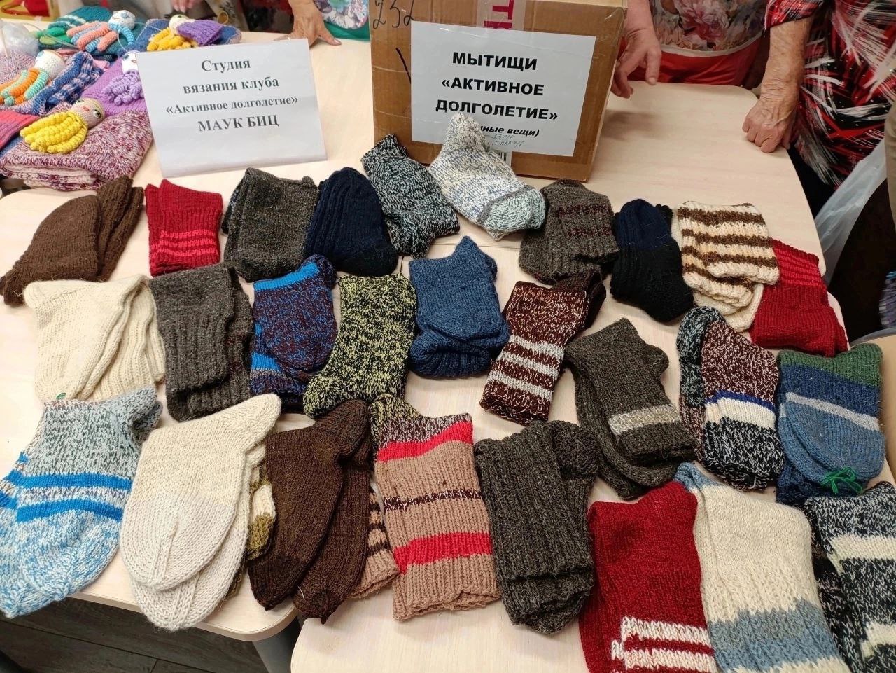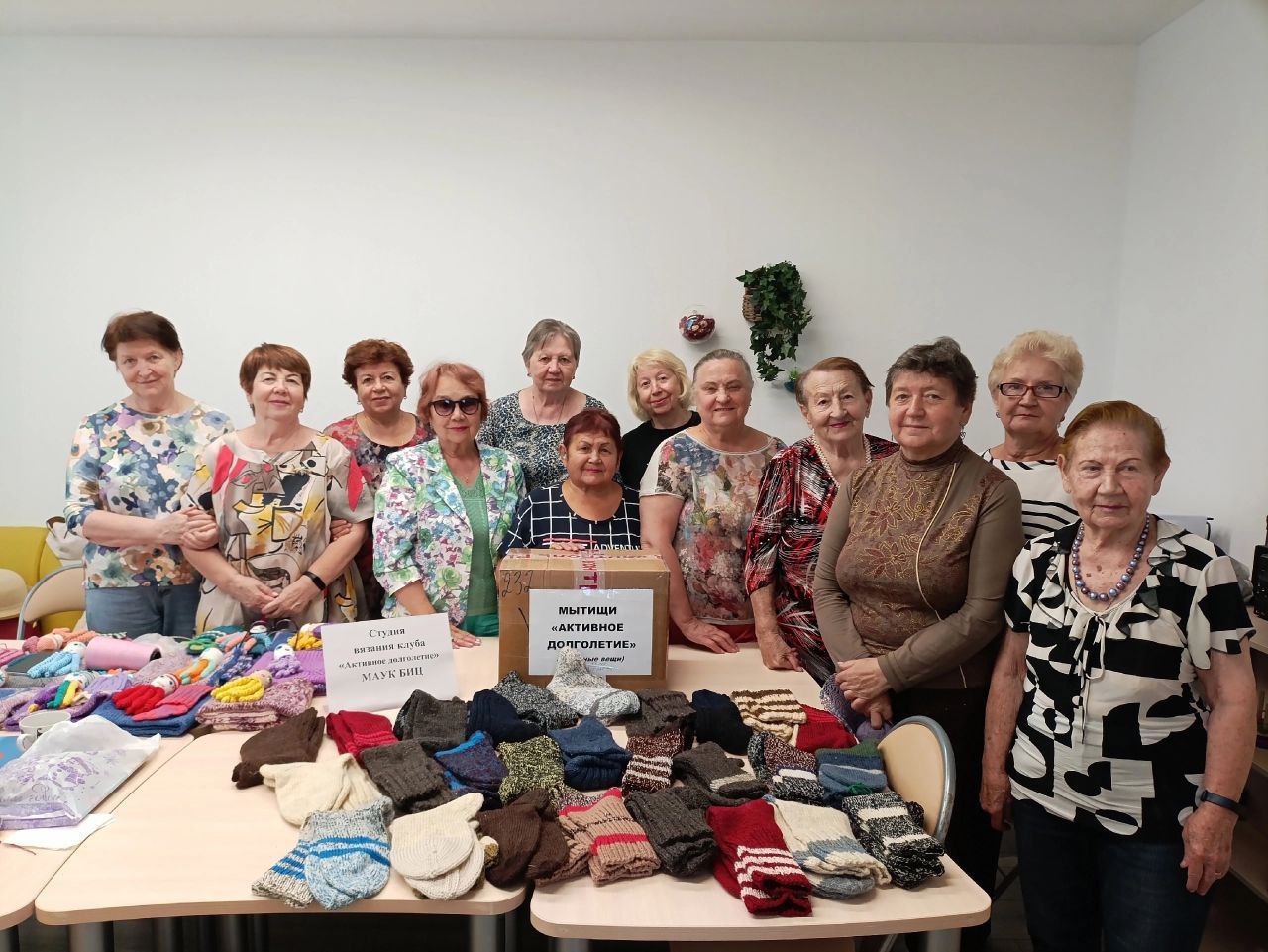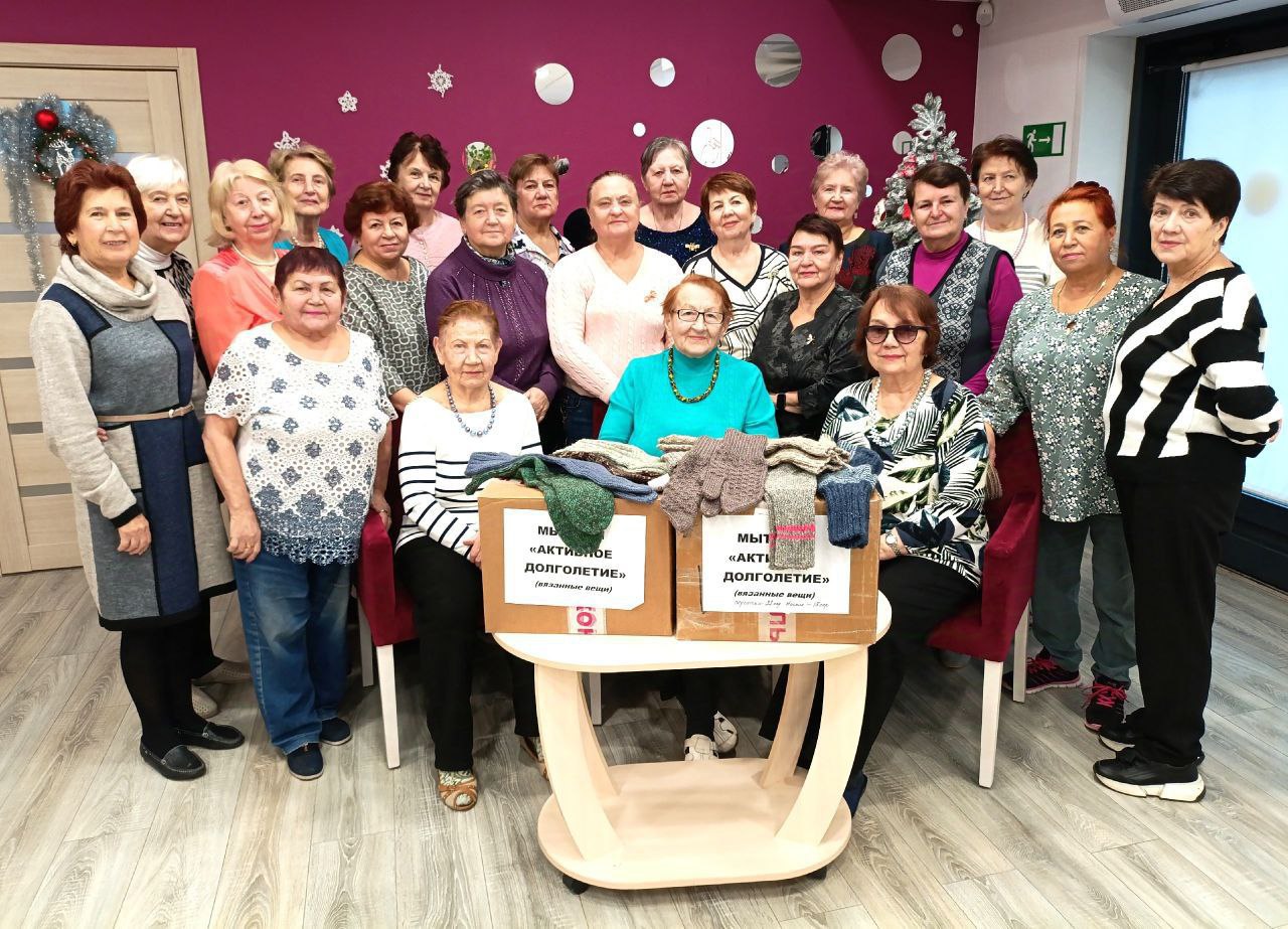 Почти 650 вязаных изделий, в числе которых 510 пар носков, по 25 манишек и шапок и других необходимых для наших защитников, находящихся в зоне СВО – таков итог прошлогодней работы участниц студии «Вязание» клуба «Активное долголетие».