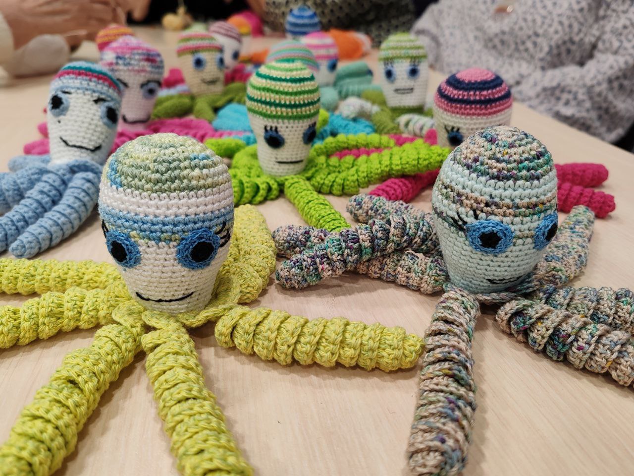 Кроме того, из-под рук трудолюбивых «пчелок» под руководством серебряного волонтера Галины Герасимовой вышло 670 комплектов для недоношенных деток в перинатальные центры Москвы и Подмосковья. А с учетом, что в каждый комплект входят шапочка, носочки, пледик и игрушка-осьминожка, –это 2680 изделий, связанных с душой и любовью.