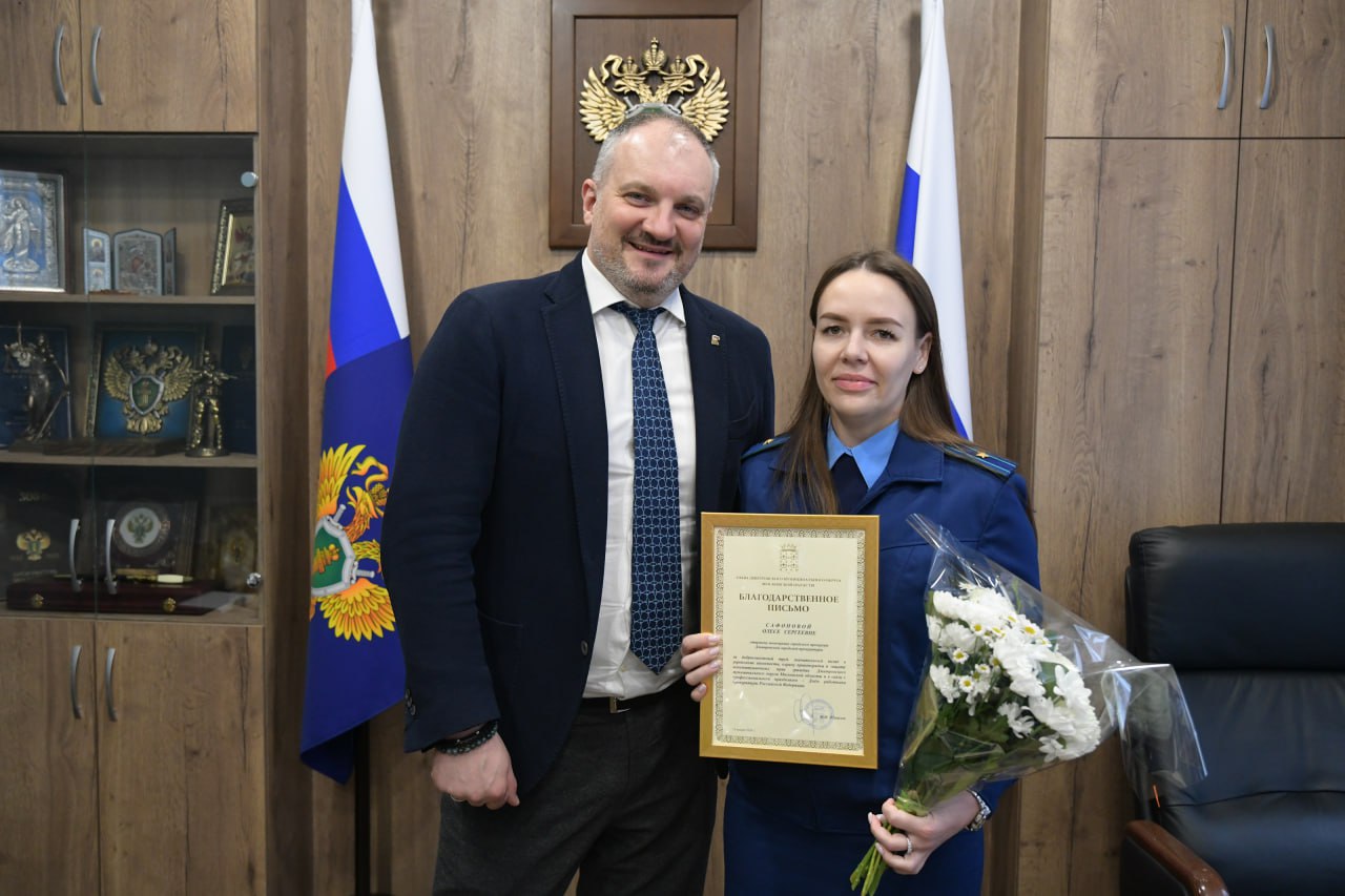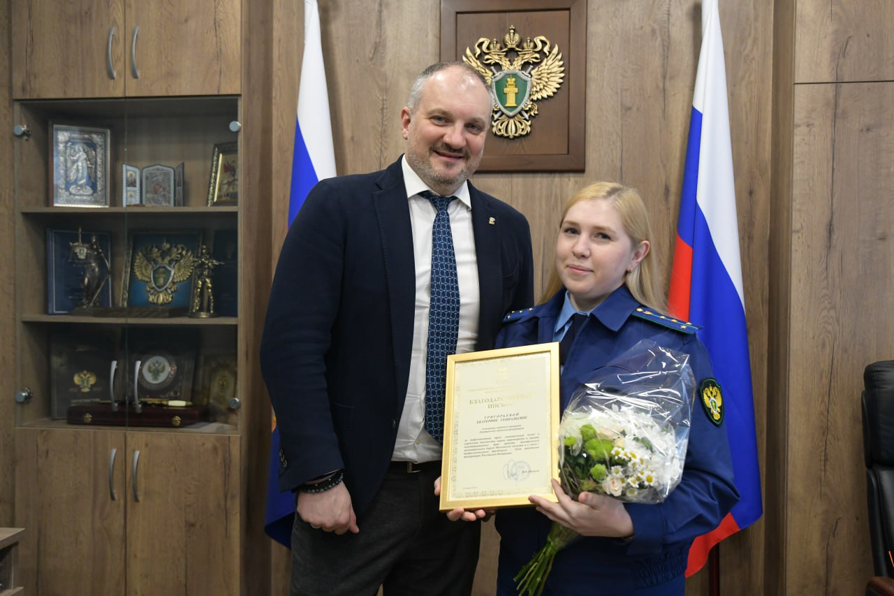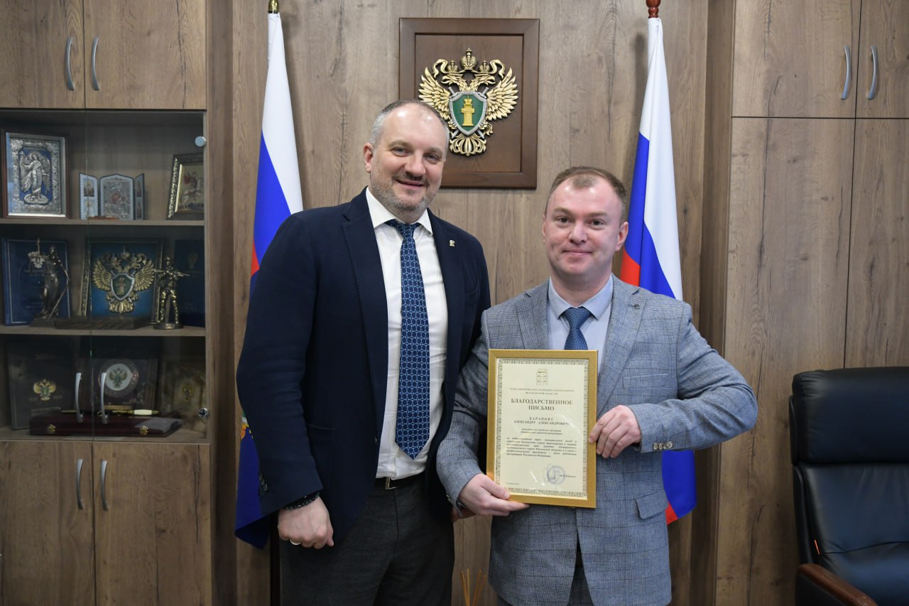Вручил благодарственные письма городскому прокурору Алексею Приходченко и его заместителям Никите Баскакову и Александру Баранову.