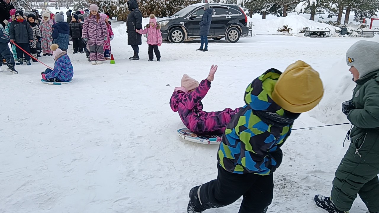 На площади Дома культуры «Русь» состоялась спортивно - игровая программа «Все на лыжню!». Сначала дети вместе с ведущей провели разминку «А на улице мороз!». Затем построили ёлку из елочных шаров, прокатили колеса, покатались на метле Бабки Ёжки и в завершении покатали девчонок на снежных ледянках. Мороз и красные щёчки были не помеха для такого зимнего веселья.