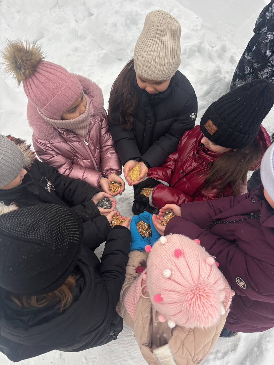 Сегодня прошла прогулка «Идем кормить птиц». Вместе с классными руководителями вышли на свежий воздух, чтобы понаблюдать за нашими пернатыми соседями и, конечно же, угостить их вкусным и полезным обедом!
