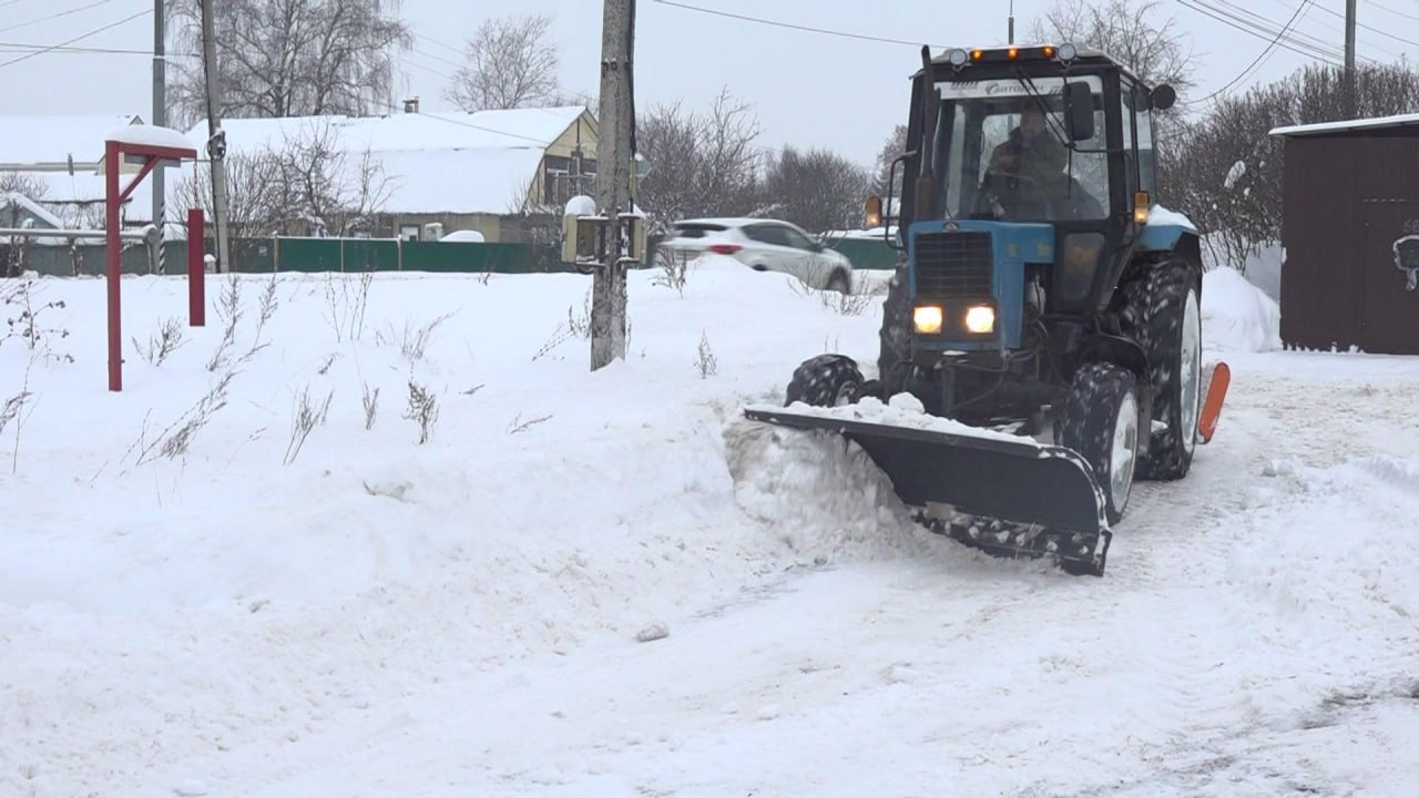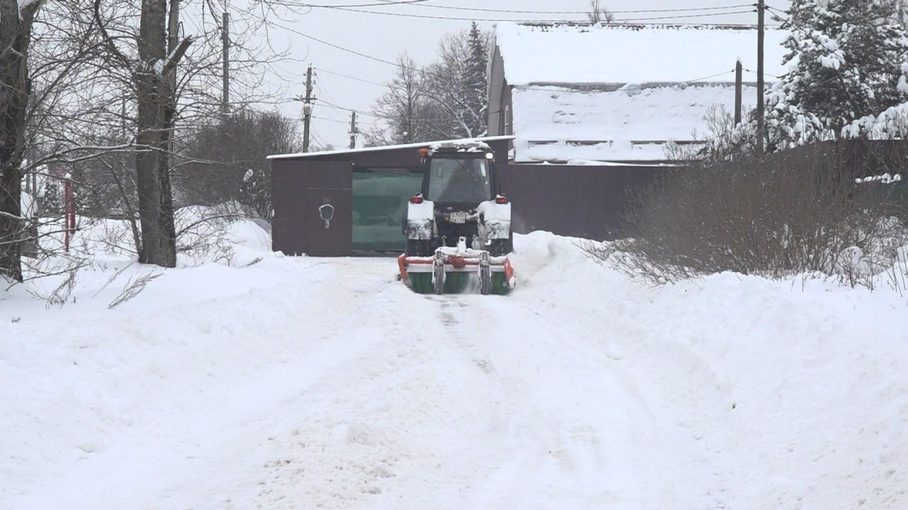 Уборка снега в деревне Осеченки. Здесь было задействовано несколько единиц техники – трактор и погрузчик. Всего на дорогах округа в настоящее время задействованы 194 единицы техники и 118 дорожных рабочих. С муниципальных дорог округа вывезено более 7 тысяч кубометров снега. И это только начало. Дорожники признаются, что работа предстоит большая.