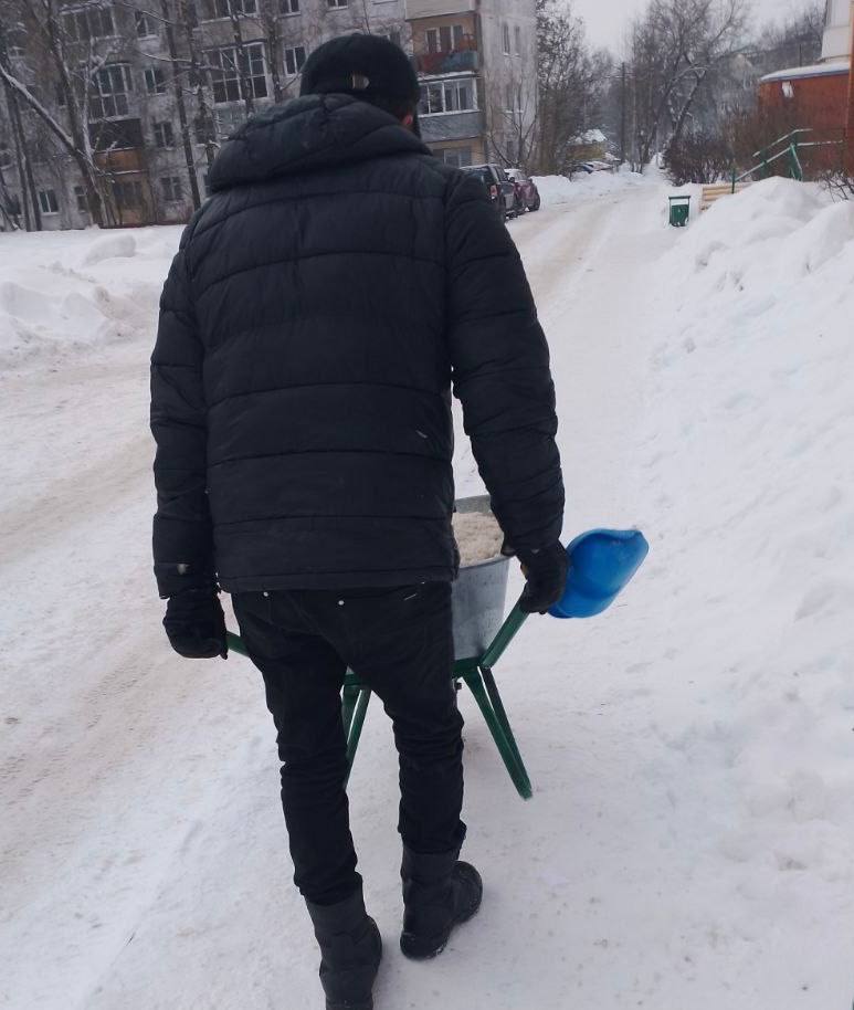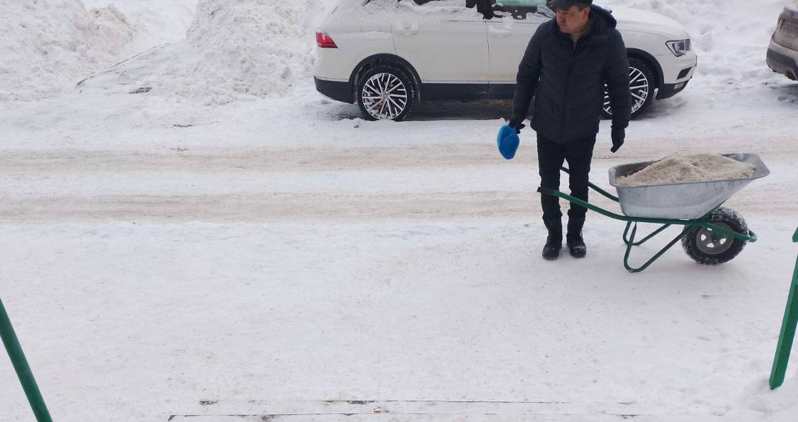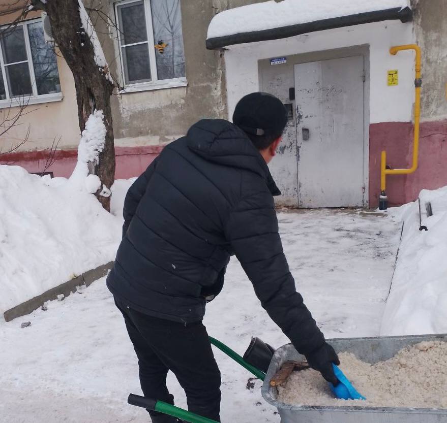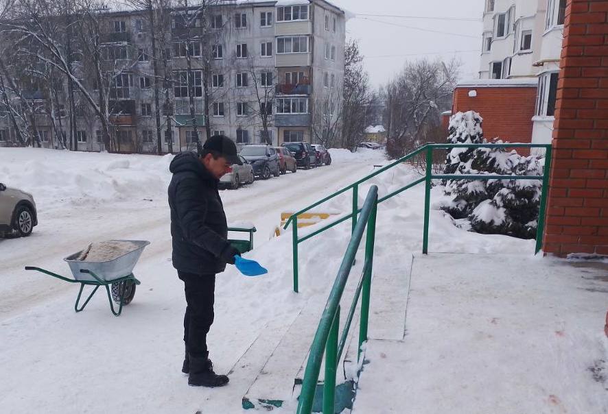 Прямо сейчас наши сотрудники посыпают специальными реагентами дорожки и входные группы: