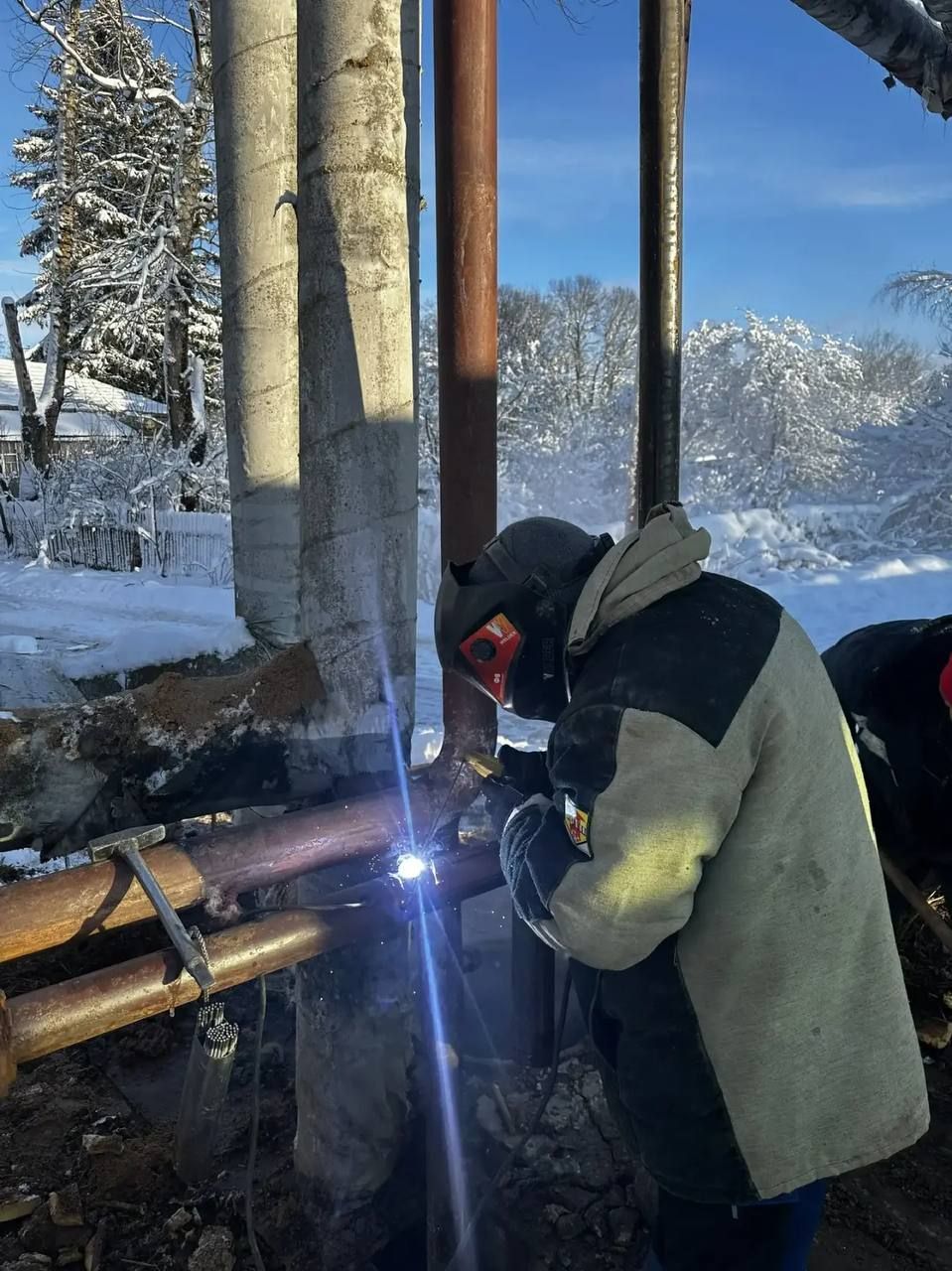 В п. Новое Гришино произошла авария на трубопроводе ГВС. Предположительная причина — наезд автомобиля на П-образный компенсатор. Несмотря на масштаб повреждений и сложные зимние условия, бригада оперативно заменила поврежденные участки и полностью восстановила теплоснабжение.