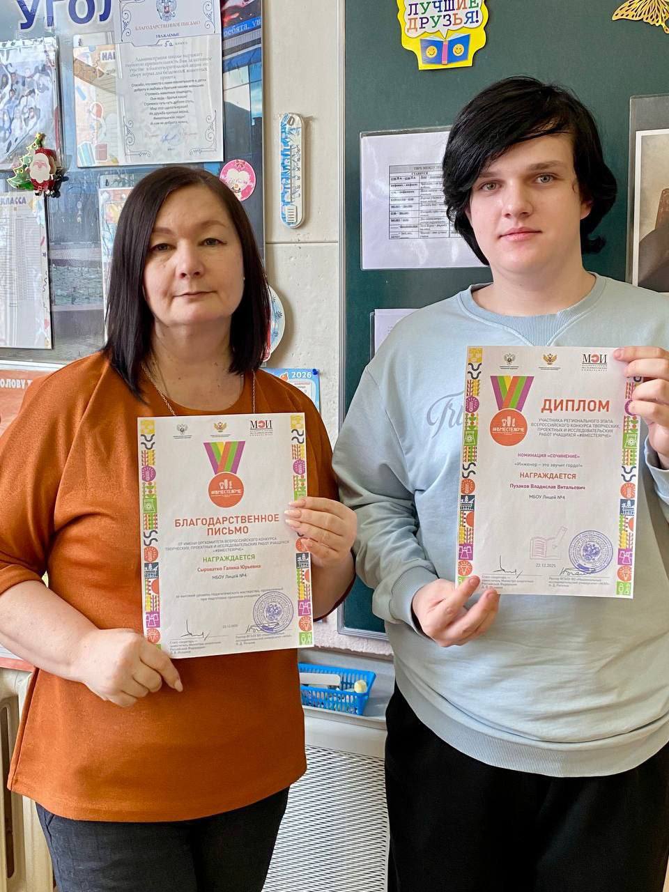 Поздравляем учеников нашего лицея, которым были вручены Дипломы участников регионального этапа Всероссийского конкурса творческих, проектных и исследовательских работ учащихся #ВМЕСТЕЯРЧЕ#!