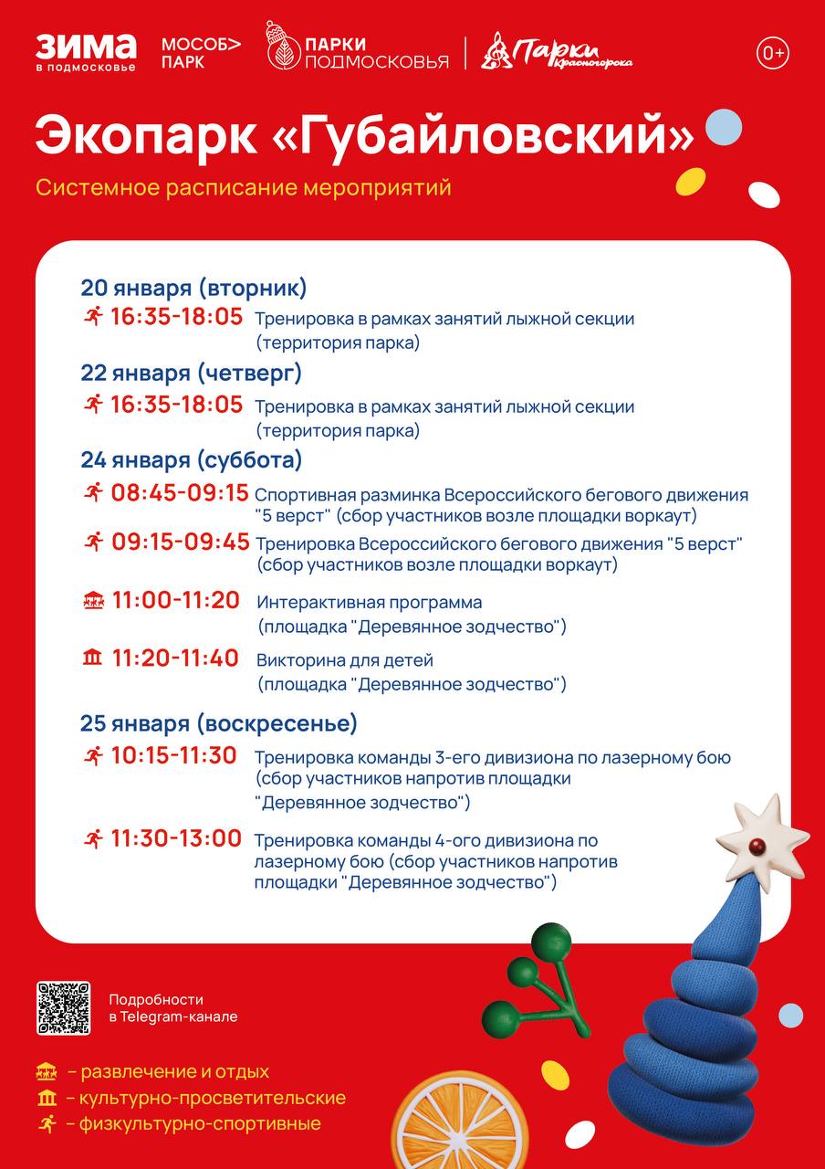 Афиша мероприятий на парковых территориях с 19 по 25 января