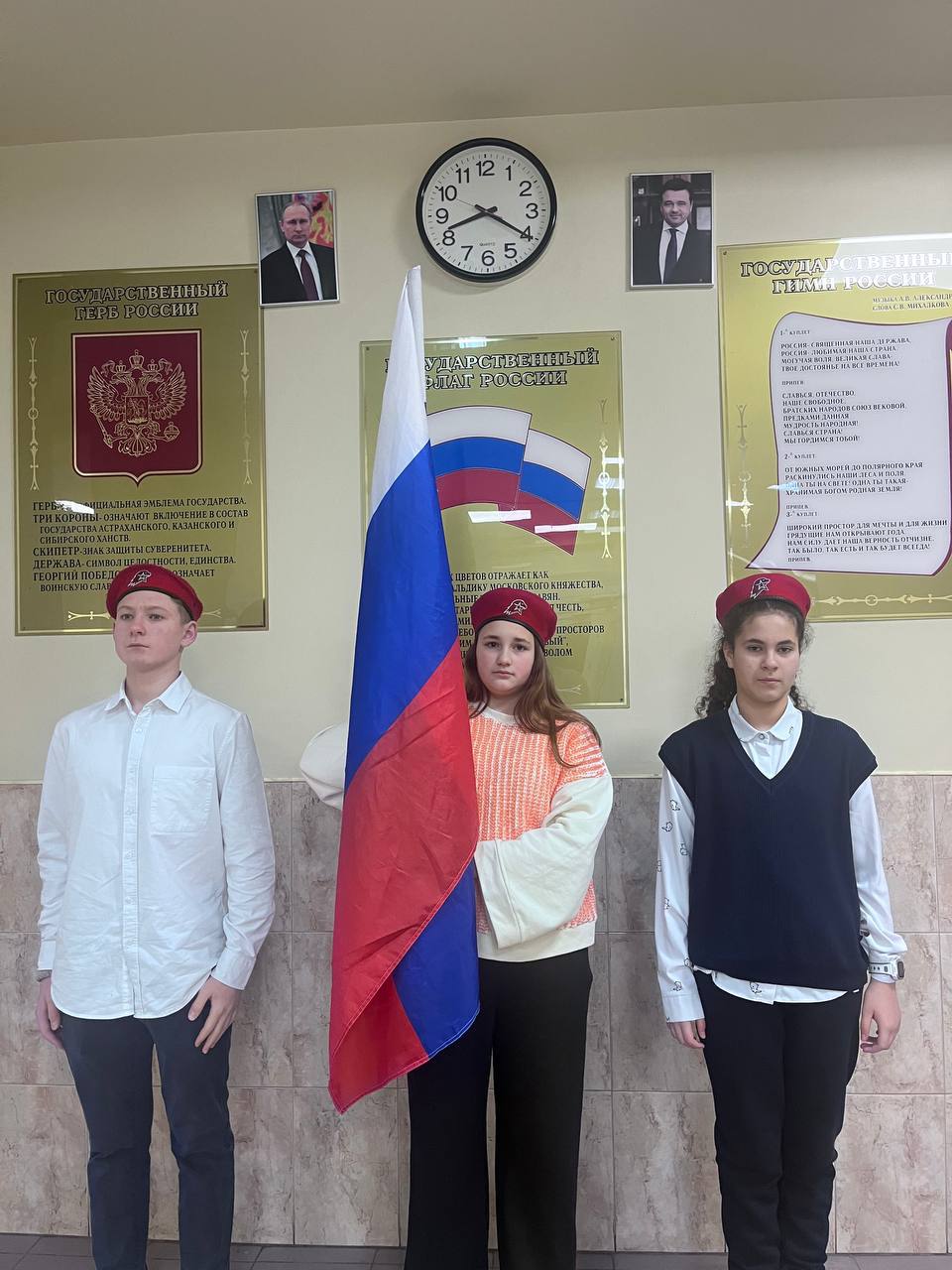 Новая неделя в лицее началась с традиционного выноса флага отрядом Юнармии «Комета» и исполнения гимна Российской Федерации .