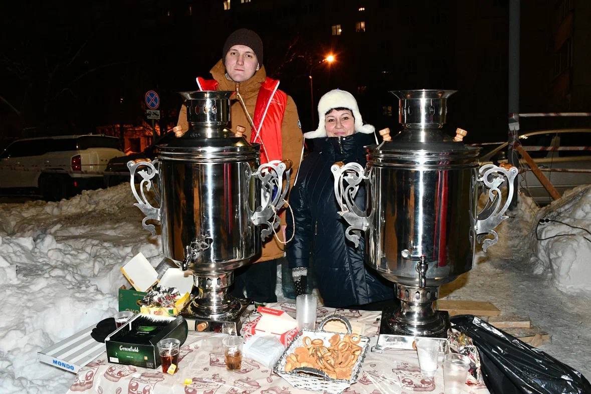 На территории возле реки были установлены модульные обогреваемые палатки для переодевания и палатки, где можно было выпить горячий чай.