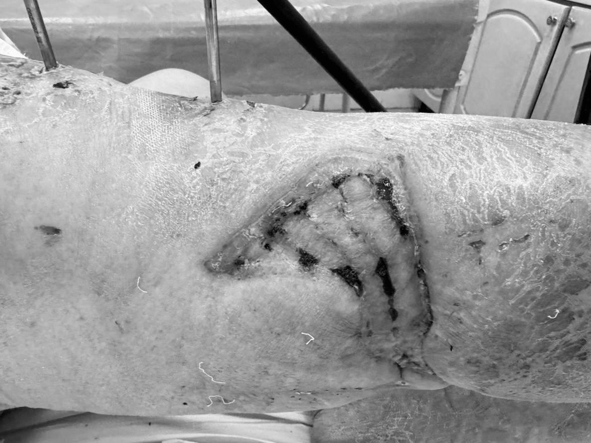 Врачи сразу провели операцию: зафиксировали кости аппаратом внешней фиксации и позже выполнили пересадку кожи. Перелом успешно сросся, аппарат уже снят, сейчас нога зафиксирована ортезом.