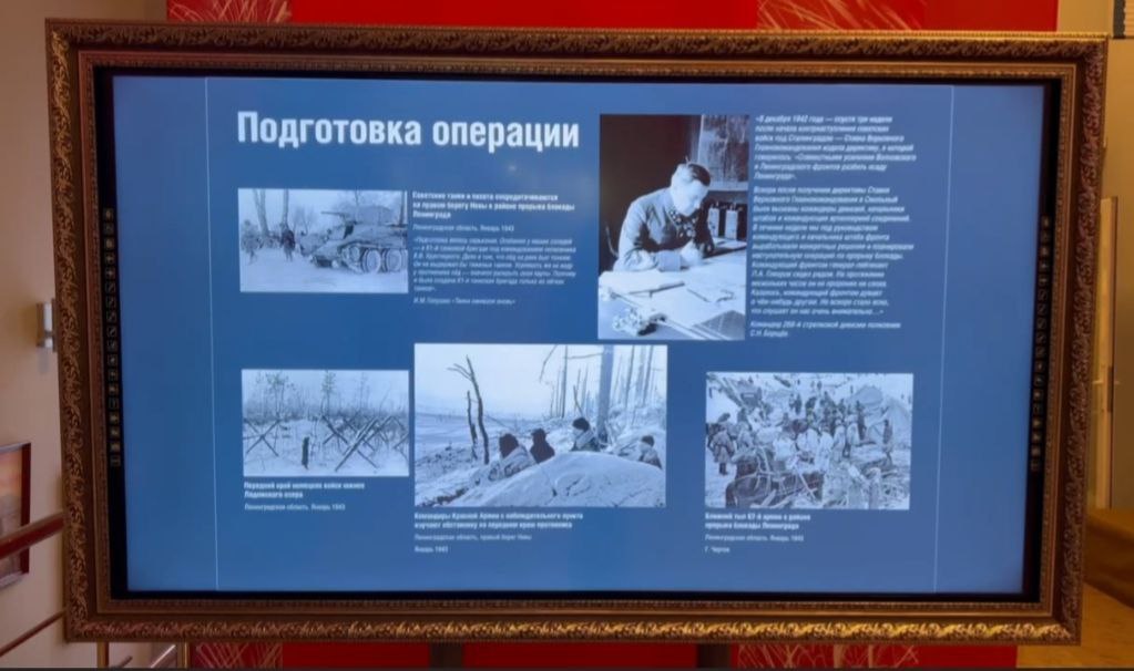 Посетители могут самостоятельно изучать ход легендарной операции «Искра», в результате которой в январе 1943 года советским войскам удалось пробить долгожданный коридор к осаждённому Ленинграду. Этот прорыв блокадного кольца стал переломным моментом, который подарил надежду жителям города и предопределил его будущее освобождение.