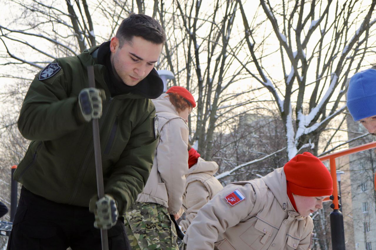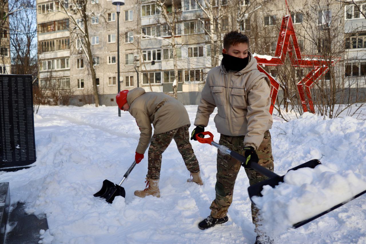 Мытищинские юнармейцы вновь приняли активное участие в уборке снега