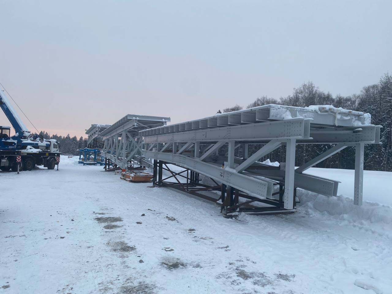 «На автомобильном мосту через реку Синичку продолжается установка ригелей и металлоконструкций. На путепроводе рядом с деревней Сабурово смонтированы опоры и выполнена укрупнительная сборка металлоконструкций на правой стороне пролёта. На велопешеходном мосту через Синичку строители завершили заливку ростверка и начали армирование опор. Степень готовности моста составляет 20%. В настоящее время пролетное строение моста доставлено на строительную площадку для последующей надвижки», – сообщил глава Минтранса Подмосковья Марат Сибатулин.
