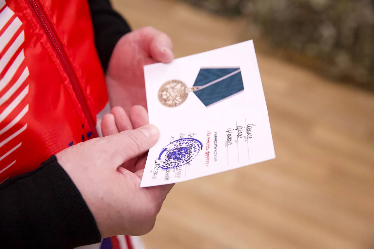 Медаль «За помощь фронту» присуждается за особый вклад в защиту Родины волонтёрам, общественным организациям и людям, которые ежедневно помогают фронту. Сергей стал первым в Подольске, кто получил эту награду.