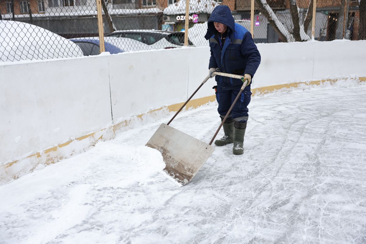 Уборка продолжается на ежедневной основе. Расчищена территория вокруг знаменитой мытищинской «китайской стены» на улице Каргина у д. 38. Здесь же по соседству чистят и дворовую ледовую площадку.