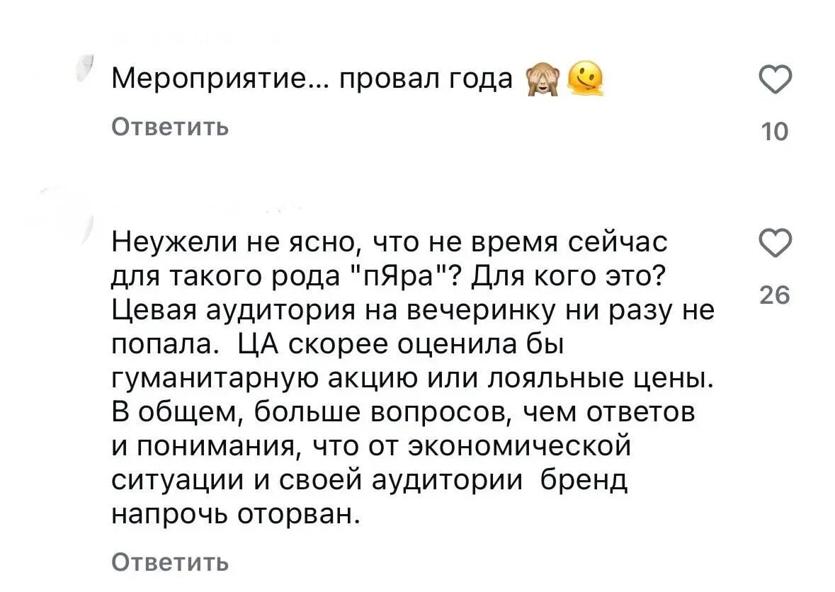 Компания в своём аккаунте в запрещённом Instagram* активно делилась фотографиями с мероприятия. И под каждым постом пользователи оставляли десятки гневных комментариев.