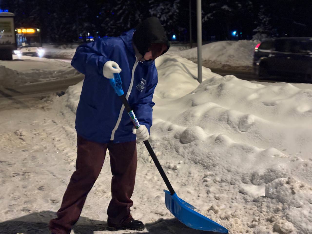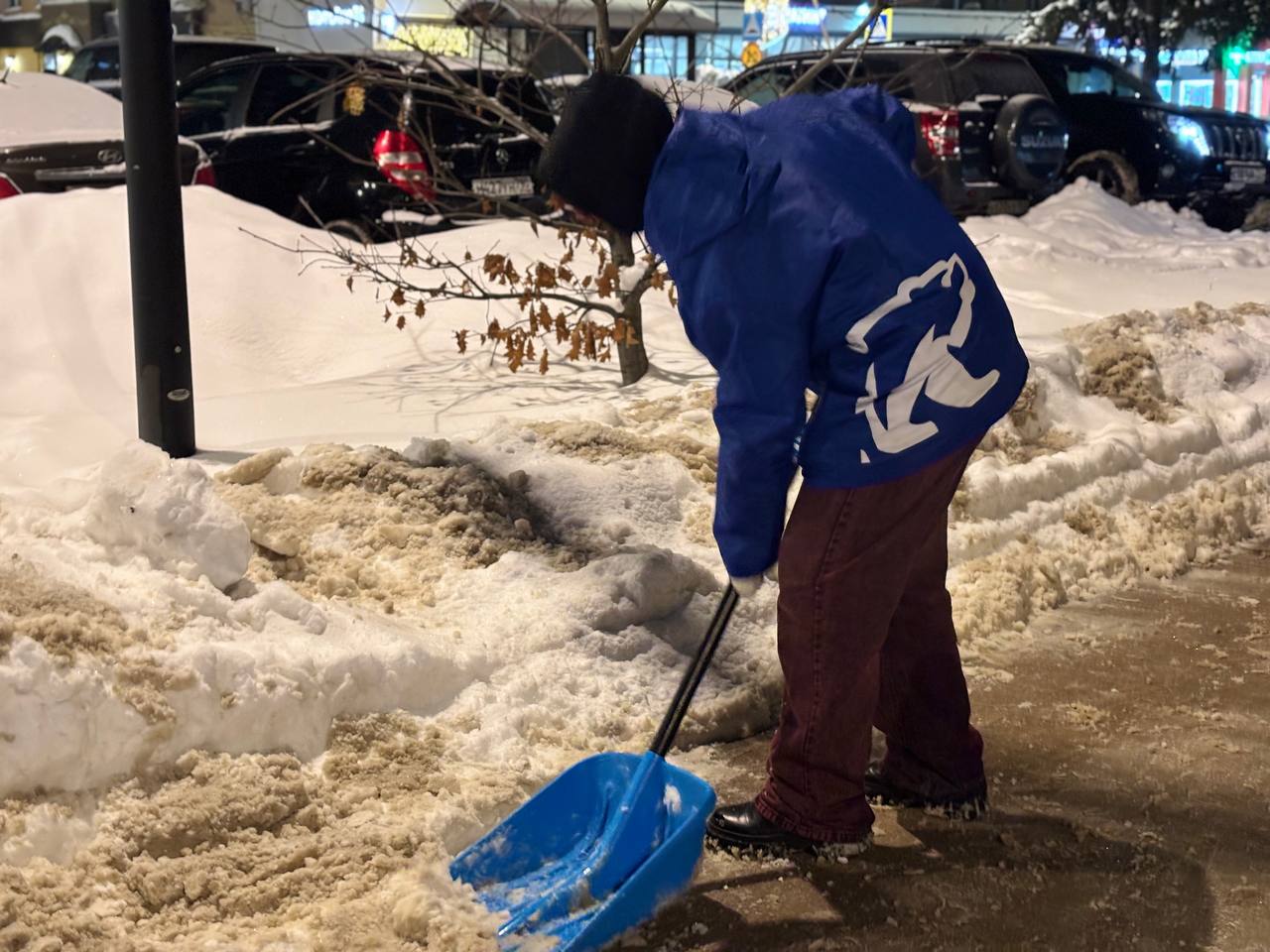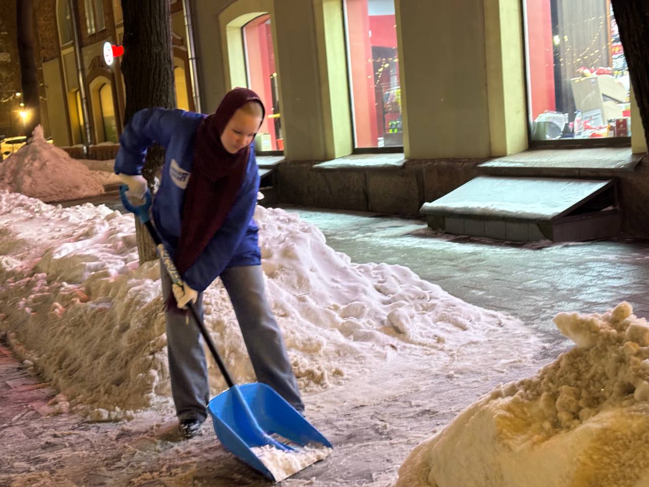 Наши молодогвардейцы продолжают очищать улицы города от снега.