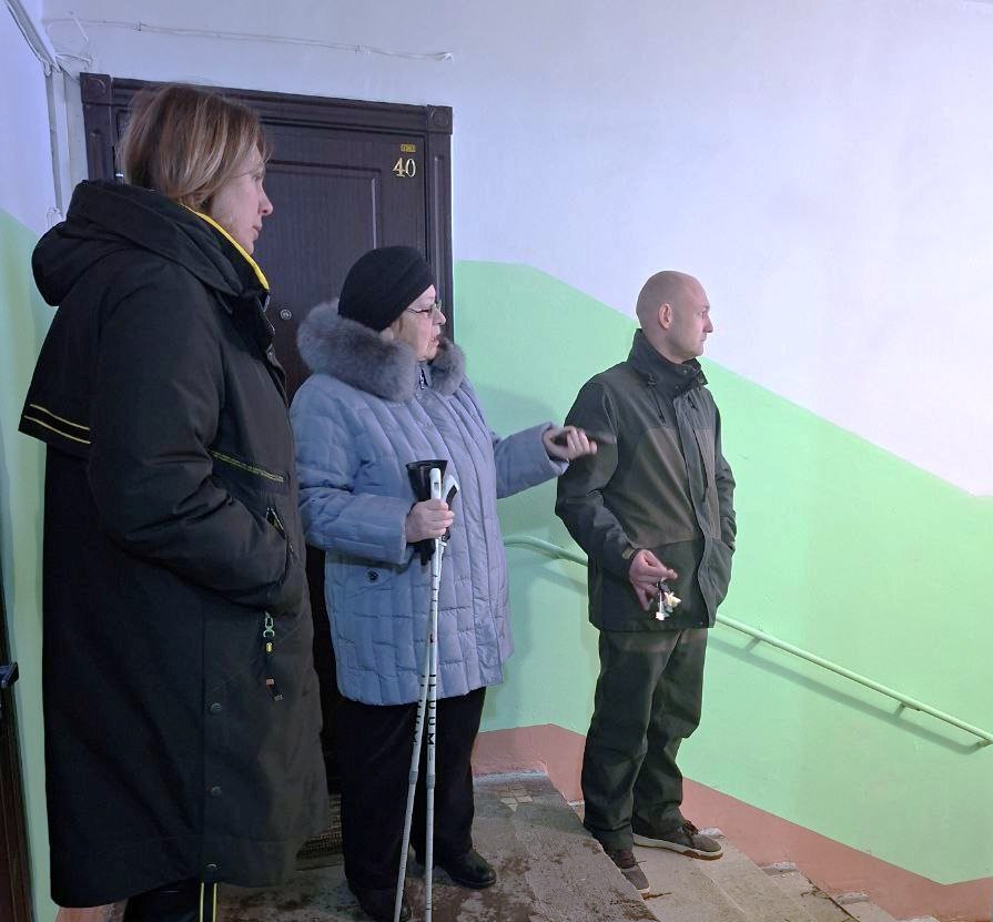 Целью визита стало ознакомление с результатами проведенных ремонтных работ. Жители дома выразили удовлетворение проделанным ремонтом, отметив положительные изменения. Небольшие замечания, касающиеся, например, подступенок на первом этаже, планируется устранить в теплое время года.