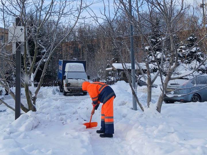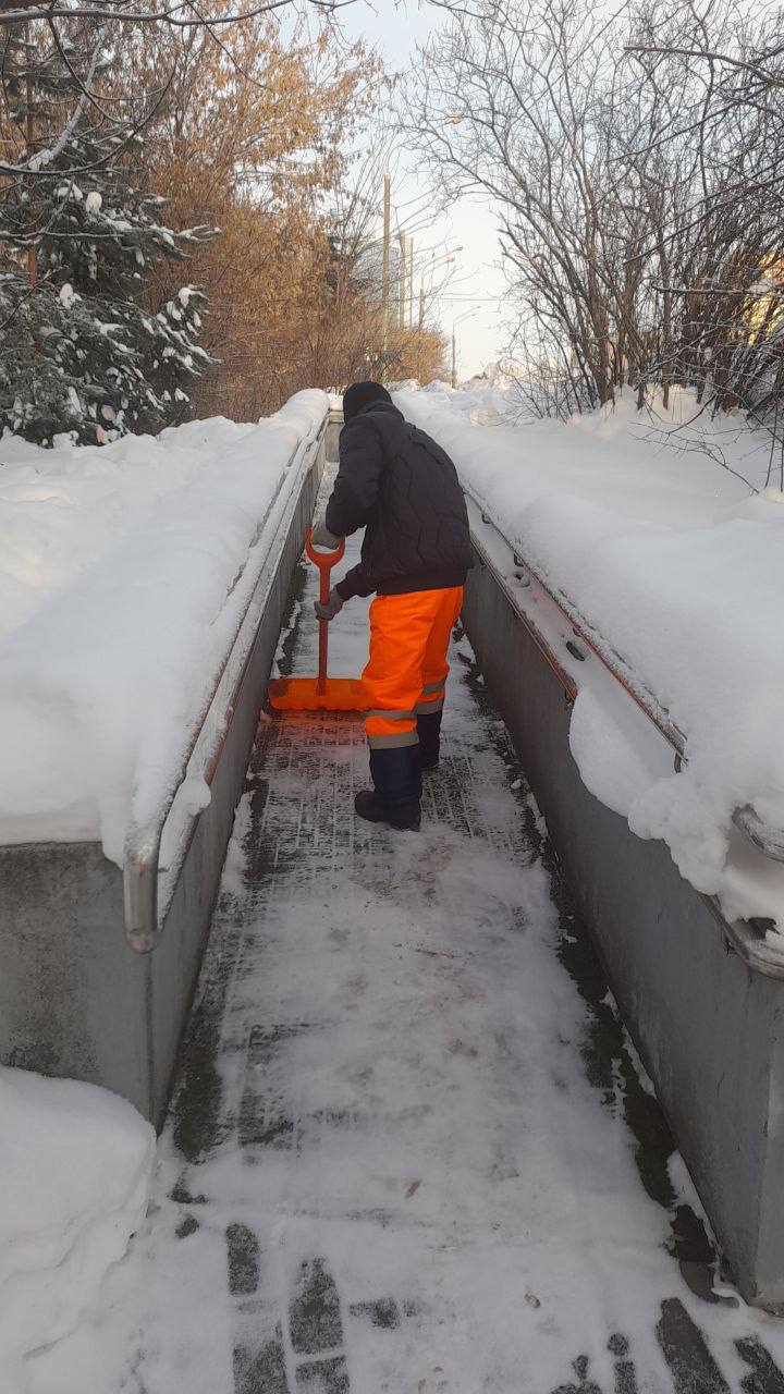 Уборка ведётся ежедневно во всех микрорайонах округа. Основной упор делают на восстановление безопасного пешеходного движения: очищают дорожки, входные группы, лестницы и подходы к общественным пространствам, обрабатывают дороги и тротуары противогололёдными материалами.