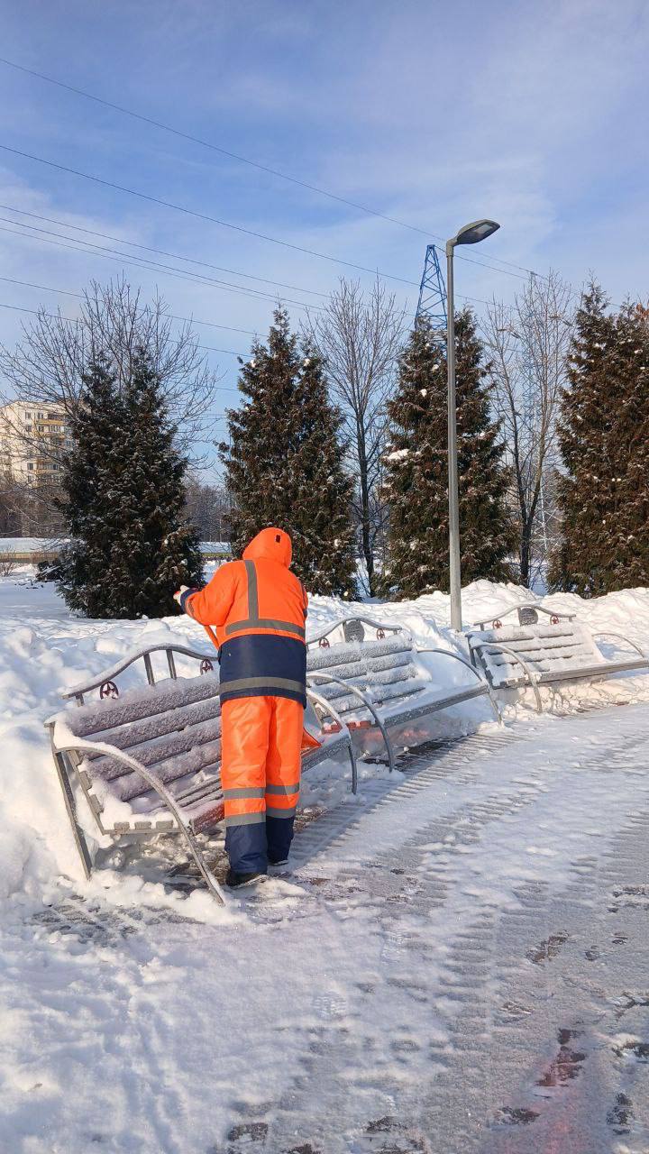 Коммунальные службы Химок расчищают снег в парках и скверах округа. Особое внимание уделяют пешеходным маршрутам и зонам отдыха.