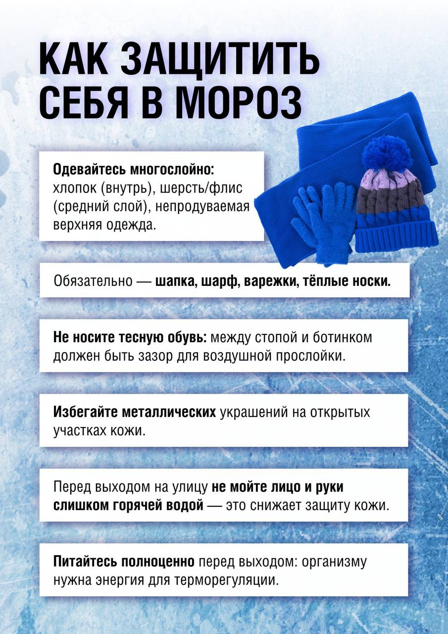 Мороз — серьёзный стресс для организма. Даже кратковременное воздействие низких температур может привести к обморожению и переохлаждению. Знание простых правил поможет сохранить здоровье и избежать опасных ситуаций.