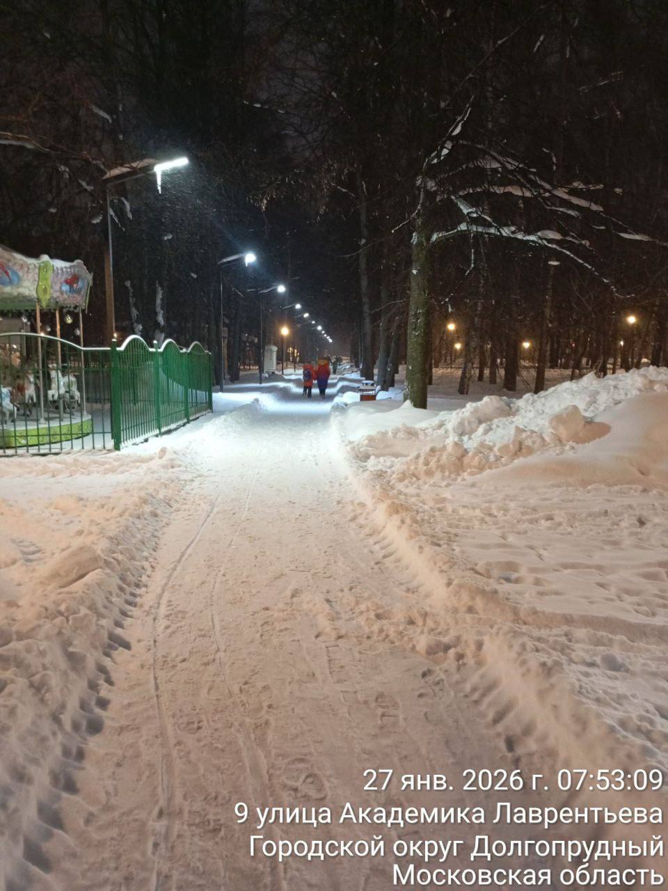 В парках Долгопрудного работа кипит с 7 утра – сотрудники «Объединённой дирекции парков» расчищают свои территории для беспрепятственного движения жителей. Первым делом от снега освобождаются тротуары, пешеходные и велосипедные дорожки, и только после этого рабочие приступают к уборке детских и спортивных площадок. При необходимости будет проведена противогололёдная обработка дорожек и площадок гранитной крошкой.