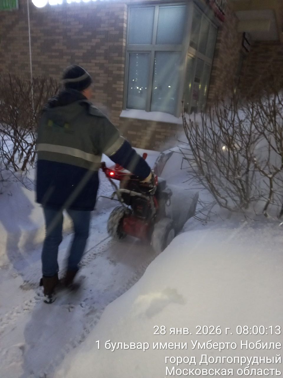 28 января в Долгопрудном трудятся 253 дворника управляющих компаний и порядка 45 единиц техники, в том числе 16 роторов. Также привлекаются дополнительные рабочие – более 60 человек.