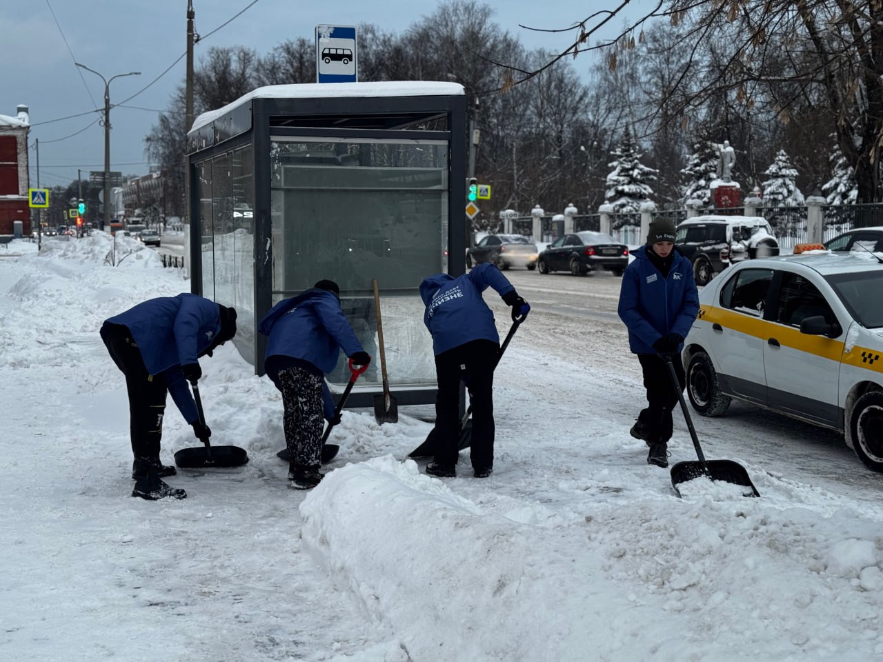 В условиях сильного снегопада ребята помогли расчистить автобусные остановки и пешеходные переходы на ул. Карла Либкнехта и ул. Ленина до ж/д вокзала.