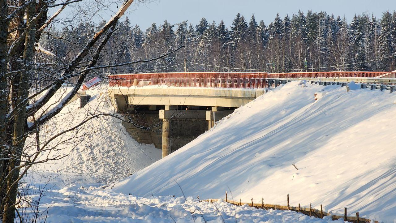 Мост длиной около 50 метров обновляют в рамках нацпроекта «Инфраструктура для жизни». На объекте уже заменены бетонные плиты, обновлены опоры и ригели, уложено новое дорожное покрытие.