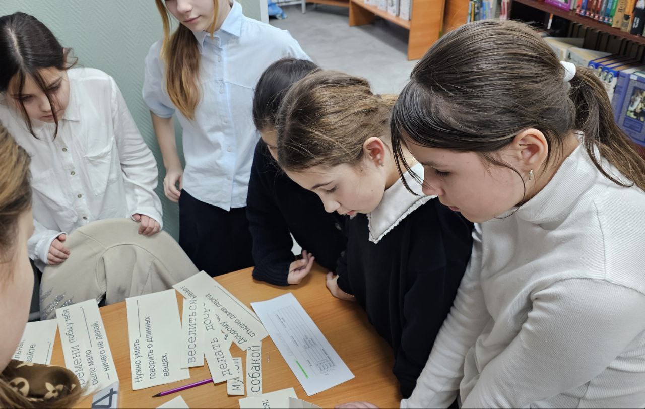 Ребята разделились на команды и приступили к выполнению заданий.Участников ожидало увлекательное путешествие по 4 станциям.У игроков была возможность показать ловкость и сноровку в практических заданиях на станции Доктор Чехов, свои знания в викторине на станции Каштанка, логическое мышление при подборе слов к чеховским цитатам на станции Мысли вслух, умение отгадывать загадки и собирать пазлы-иллюстрации на станции Весёлая компания.