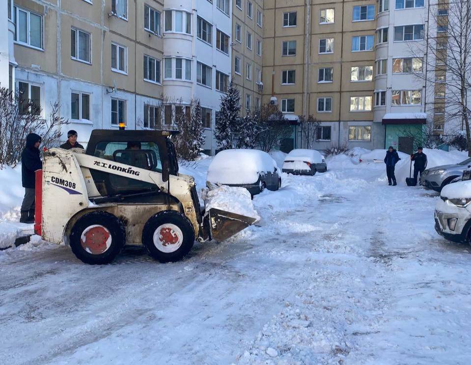 Снега выпало много, но мы работаем на опережение! Прямо сейчас по адресу: ул. Московская д. 98 работает спецтехника