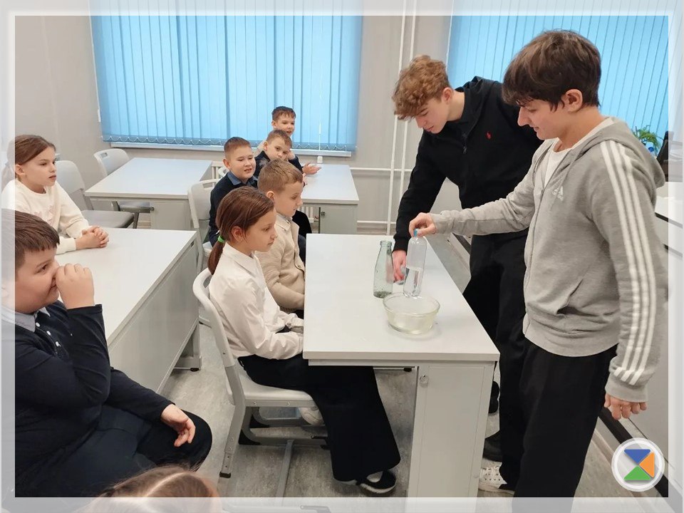 Сегодня учащиеся 10б класса нашей школы — Попеску Архип и Максимов Даниил — устроили увлекательное мероприятие для младших школьников. Они продемонстрировали удивительные физические эксперименты, вызвавшие неподдельный интерес у ребят из 3э класса.