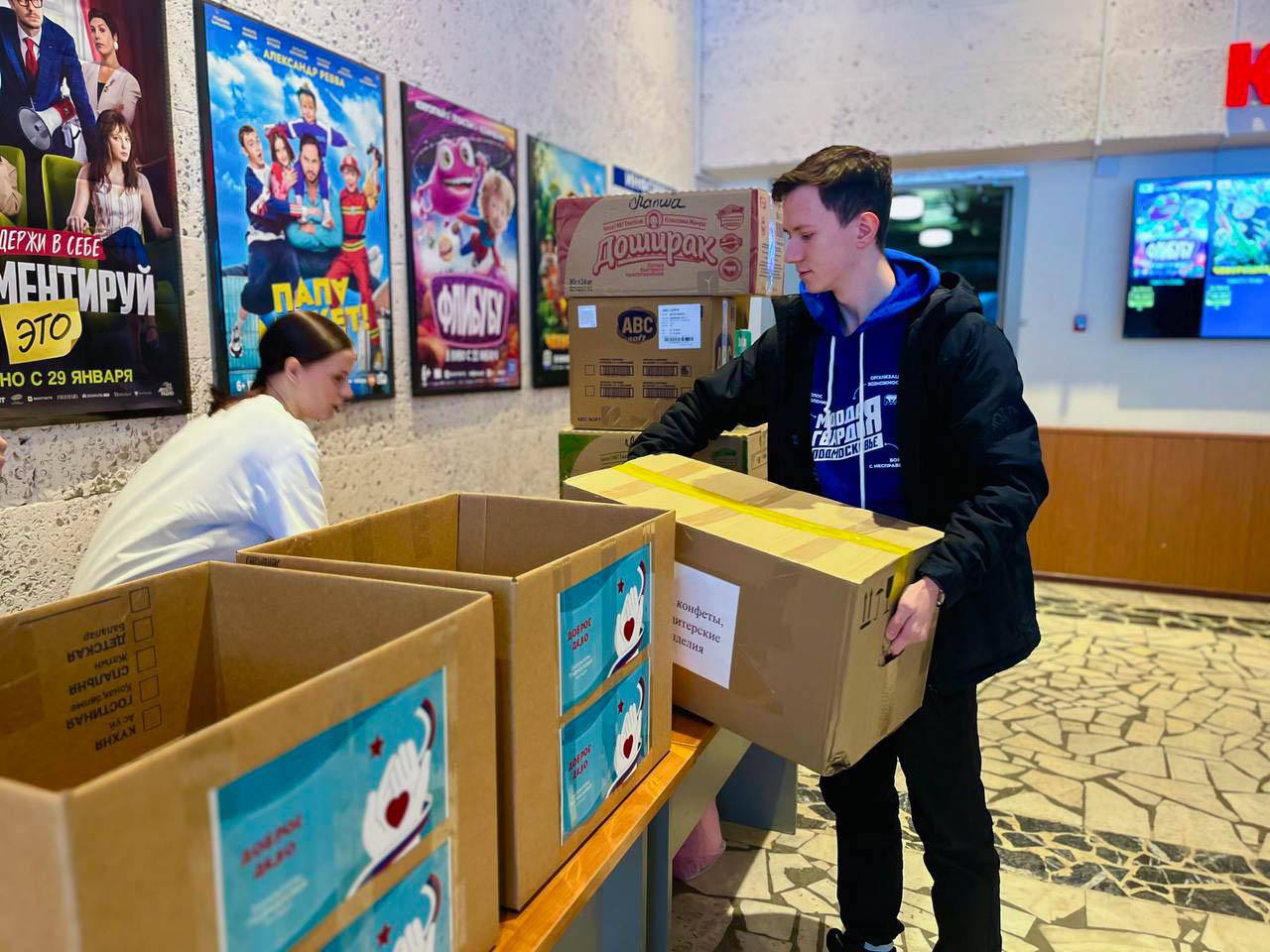 В кинотеатре «Искра» Ленинского городского округа состоялась благотворительная акция по сбору гуманитарной помощи «Доброе дело — нашим защитникам» в поддержку военнослужащих, участвующих в специальной военной операции.