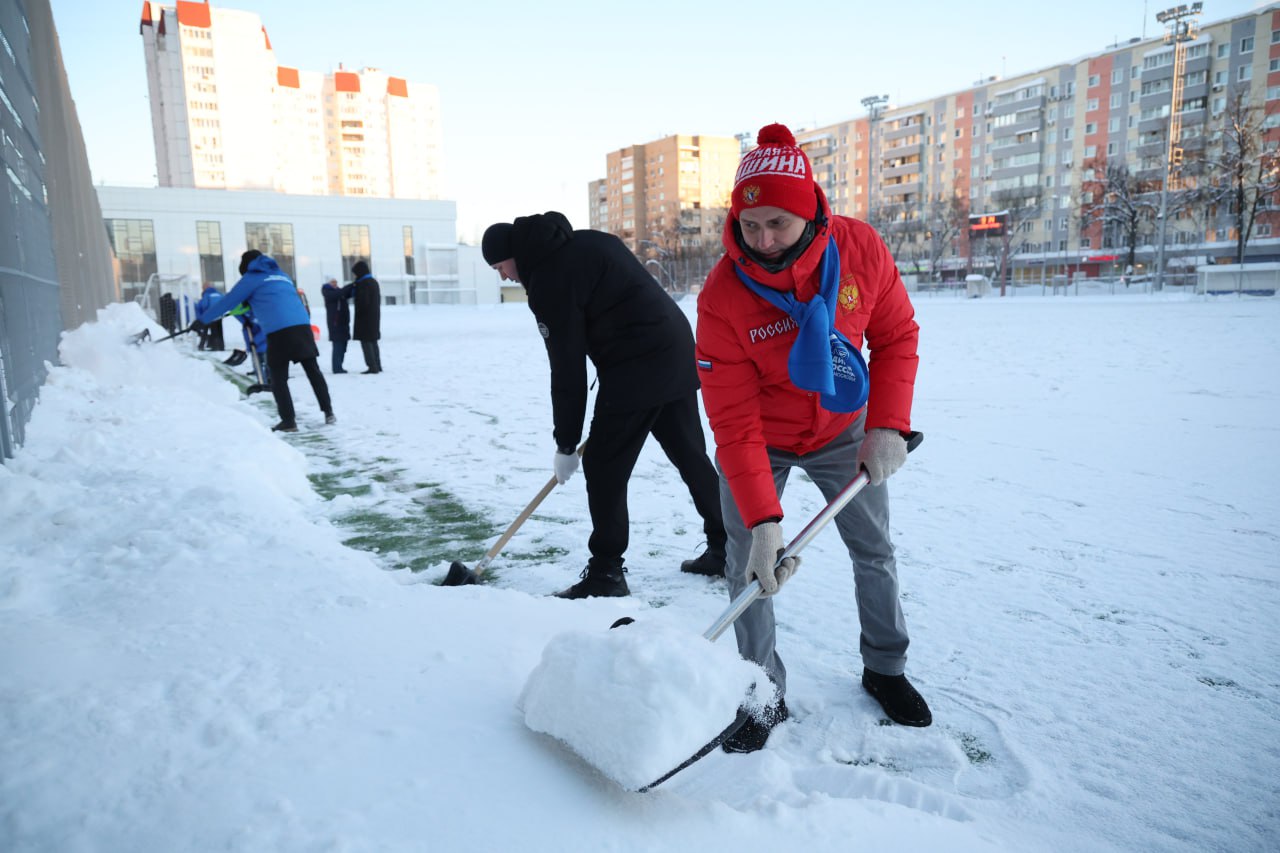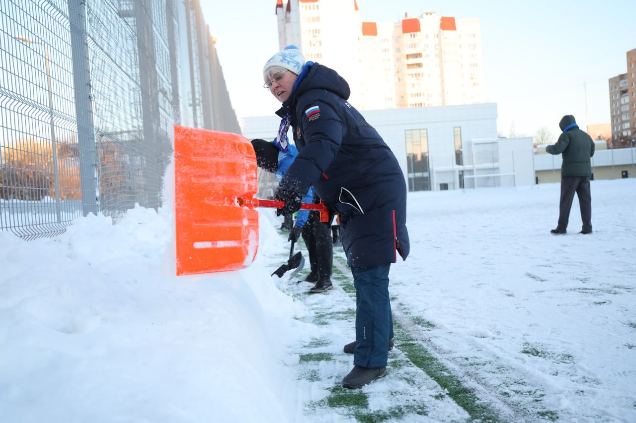 Одной из площадок проведения субботника стал стадион «Труд». Для расчистки территории от снега и наледи здесь собрались член Единой России Марина Жирова, активисты «Молодой Гвардии», руководство стадиона, тренеры, спортсмены и их родители, жители близлежащих домов. Весь необходимый инвентарь для участников субботника выдается на местах проведения работ.