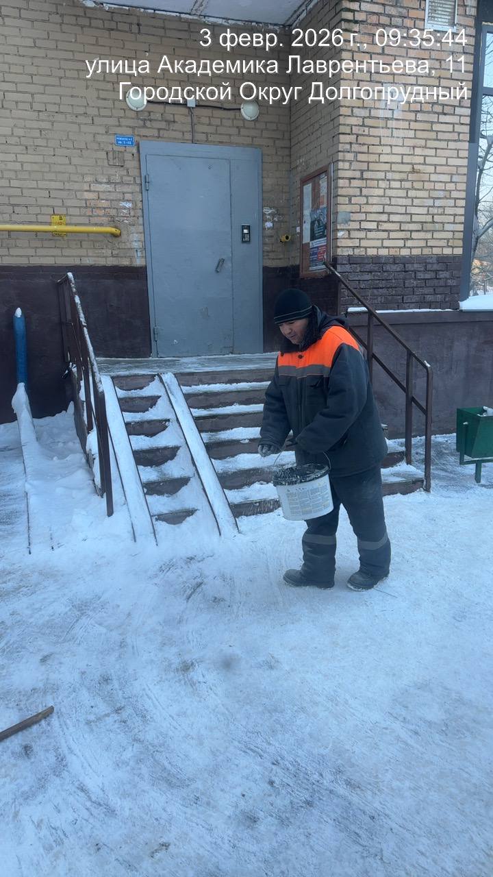 3 февраля 14 управляющих компаний Долгопрудного направили на расчистку дворовых территорий 249 дворников и 35 единиц спецтехники.