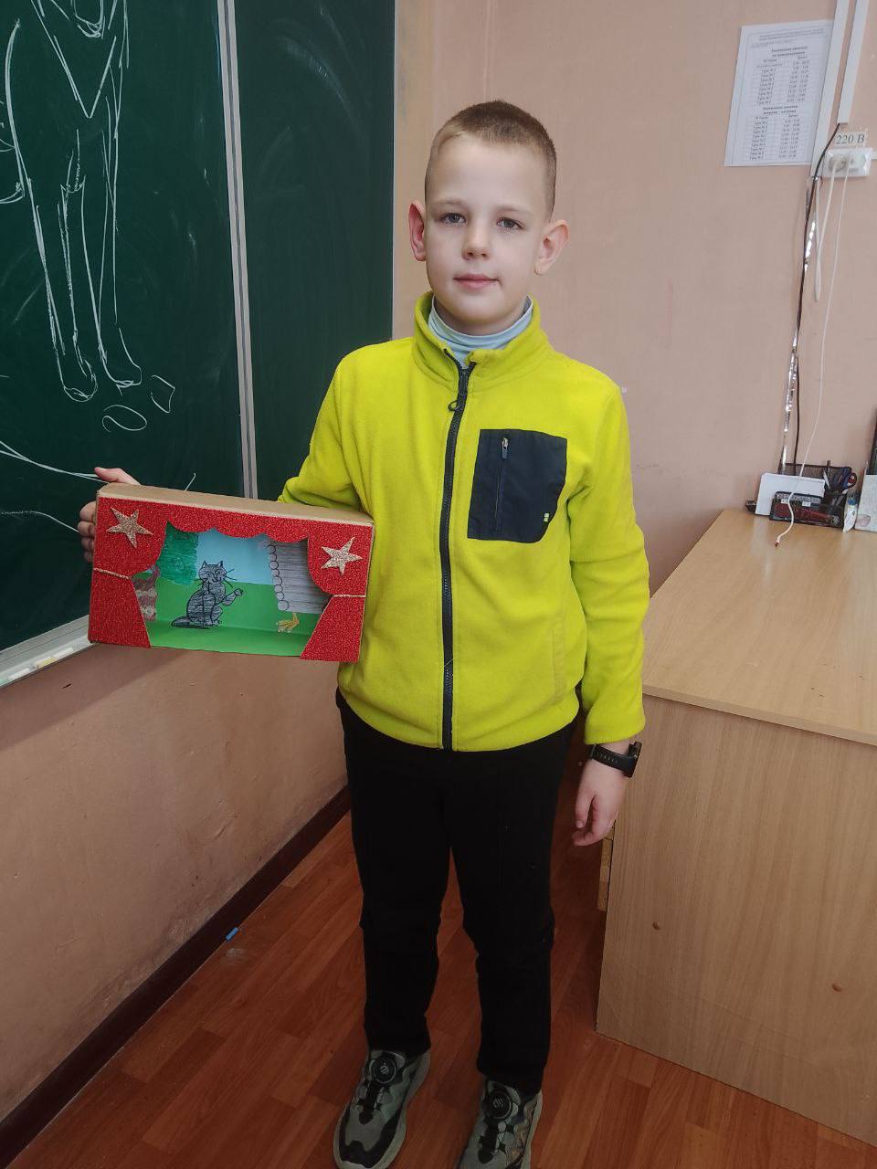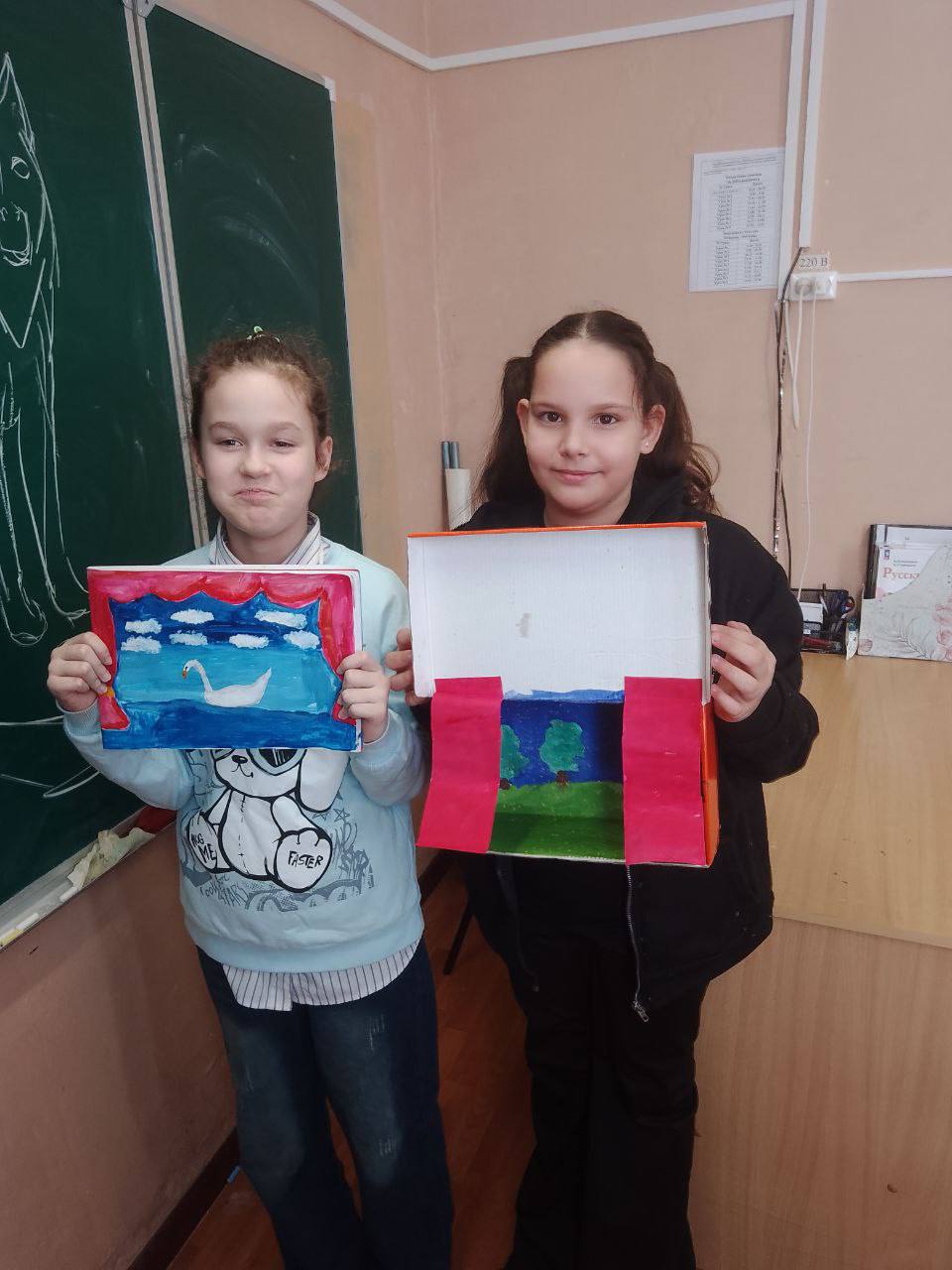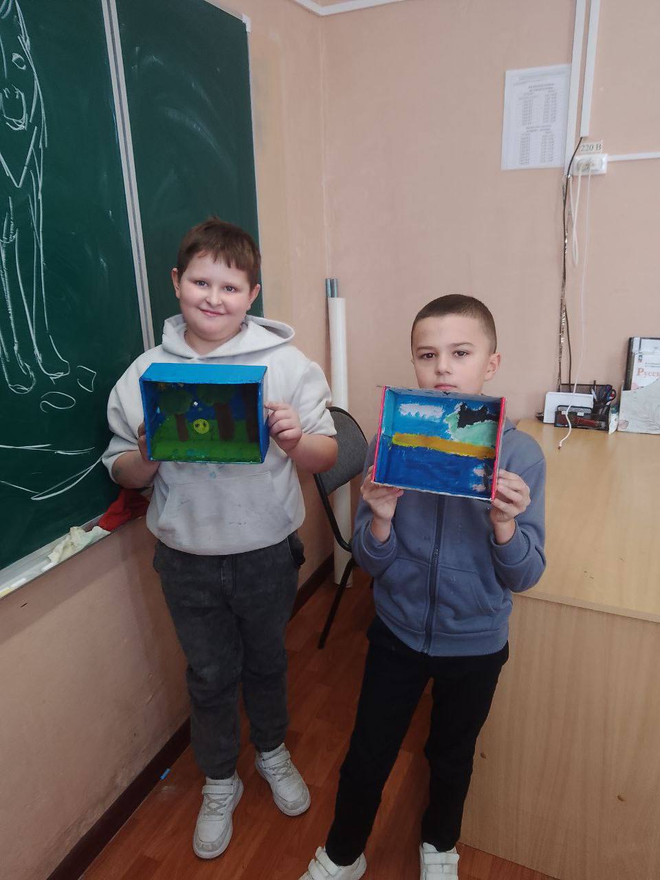 На занятиях внеурочной деятельности В мире книг учениками были выполнены иллюстрации на произведение "Бурый волк" Джека Лондона, а также была выполнена декоративная работа по теме театр в коробке.
