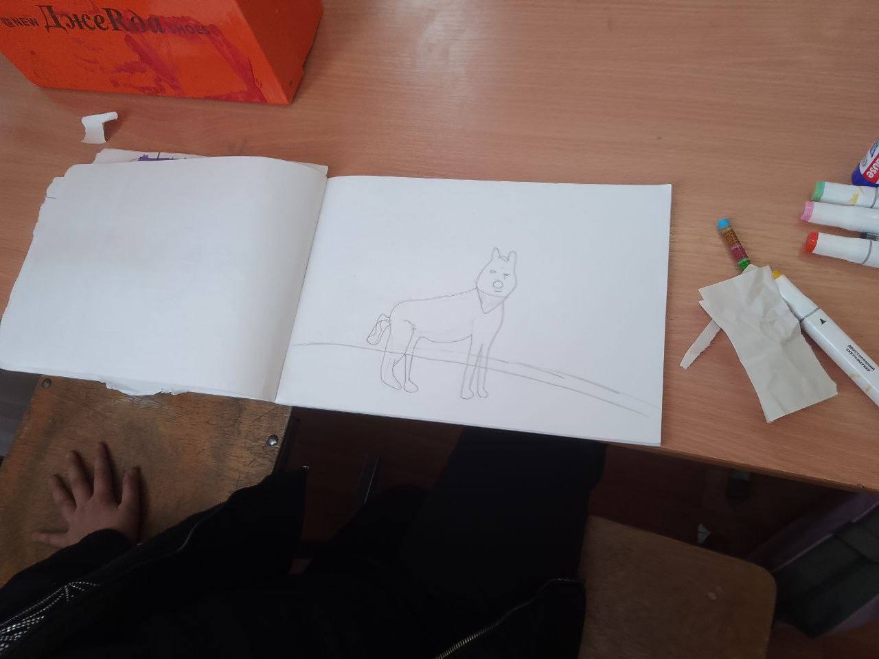 В МИРЕ КНИГ. На занятиях внеурочной деятельности «В мире книг» учениками были выполнены иллюстрации на произведение "Бурый волк" Джека Лондона, а также была выполнена декоративная работа по теме театр в коробке