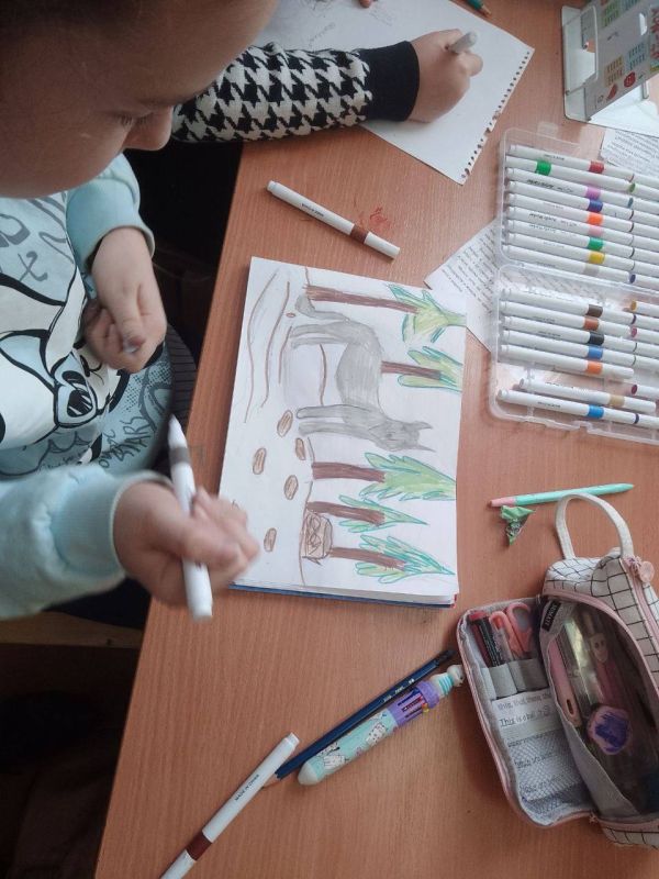 На занятиях внеурочной деятельности «В мире книг» учениками были выполнены иллюстрации на произведение "Бурый волк" Джека Лондона, а также была выполнена декоративная работа по теме театр в коробке.